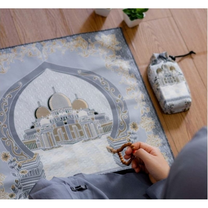 Sajadah Travel Praktis Lipat dengan Pouch Cocok Souvenir Umroh Haji Ringan Dibawa