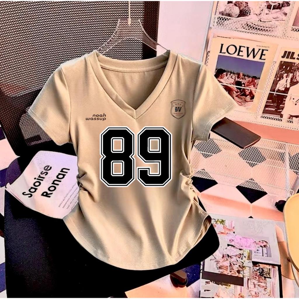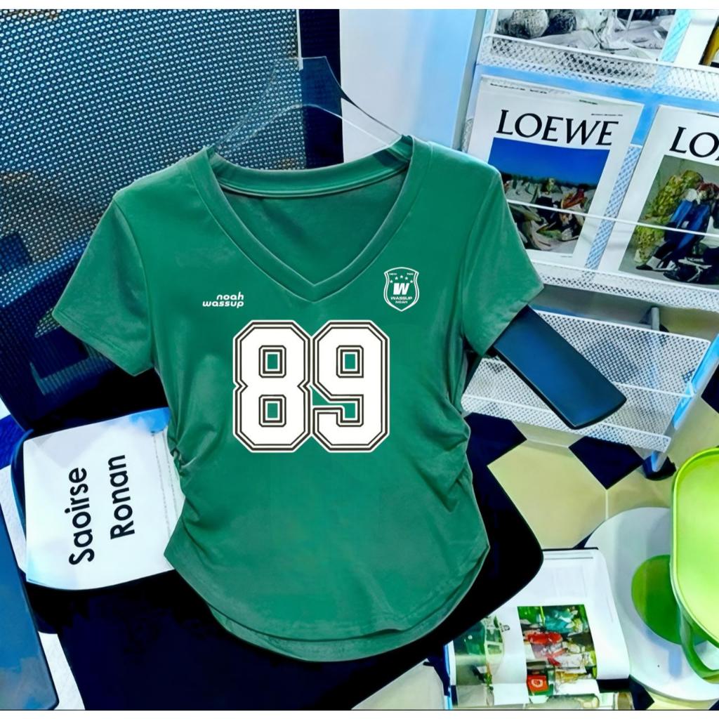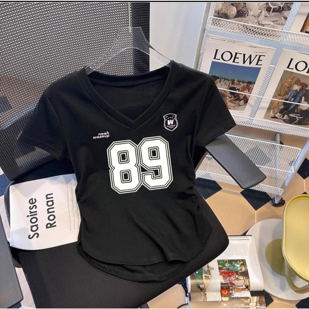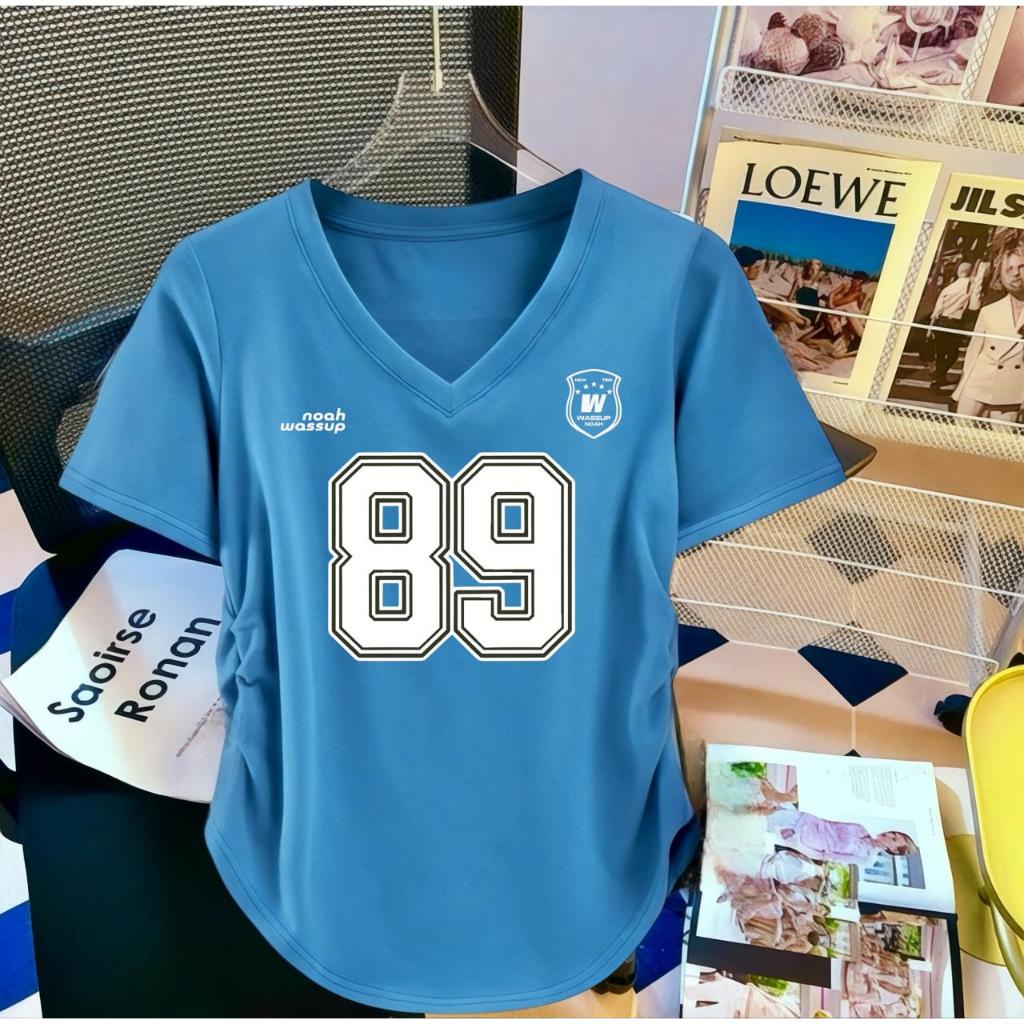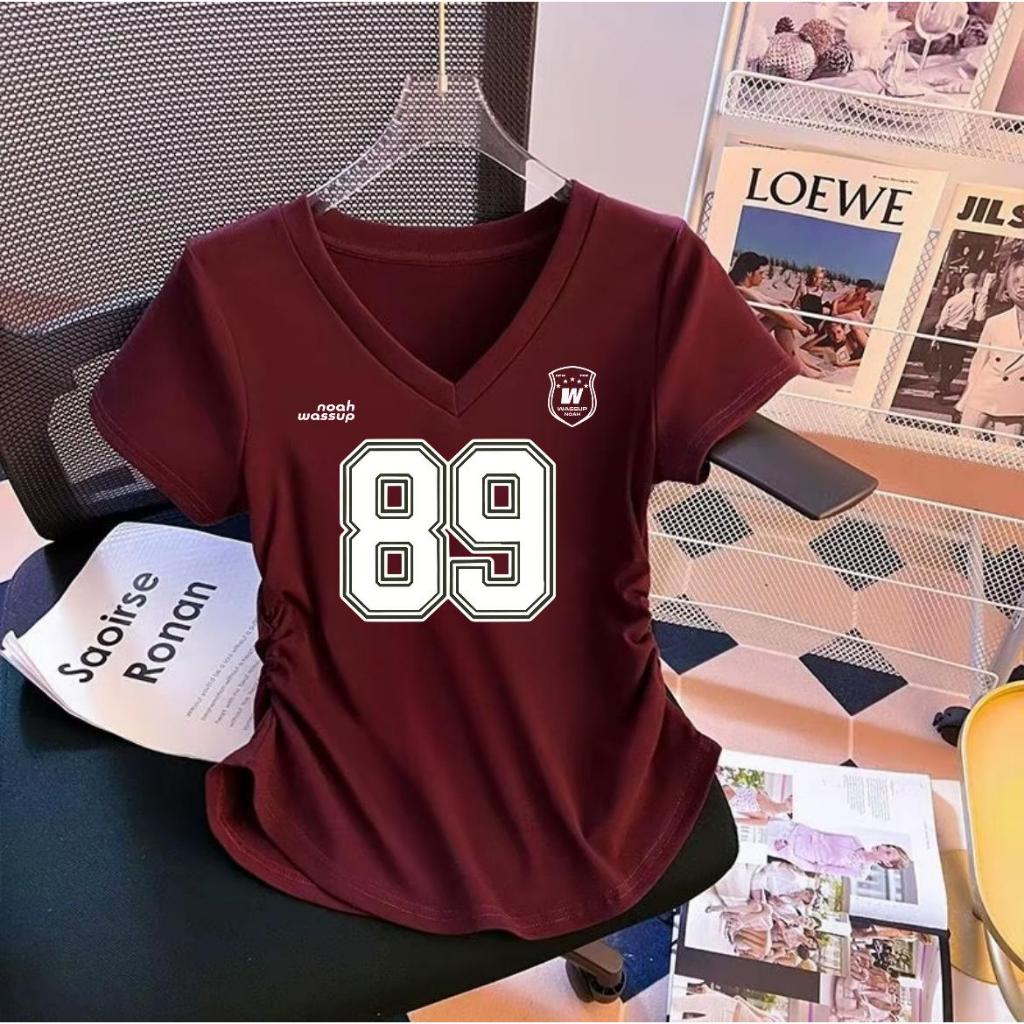 Atasan Kaos Wanita Kerut V Neck Terbaru Motif Angka Jersey Digital Printing Premium