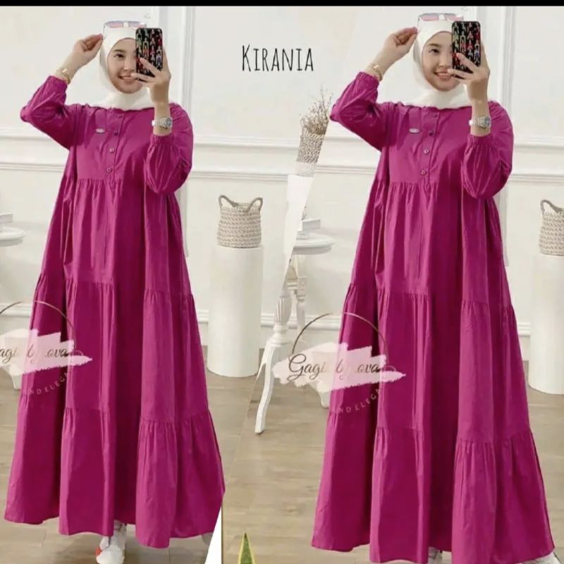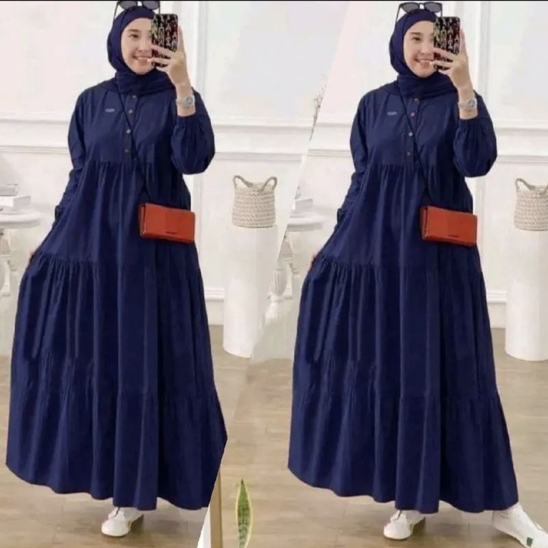Gamis Wanita Bahan Rayon Tebal Kancing Busui Model Susun