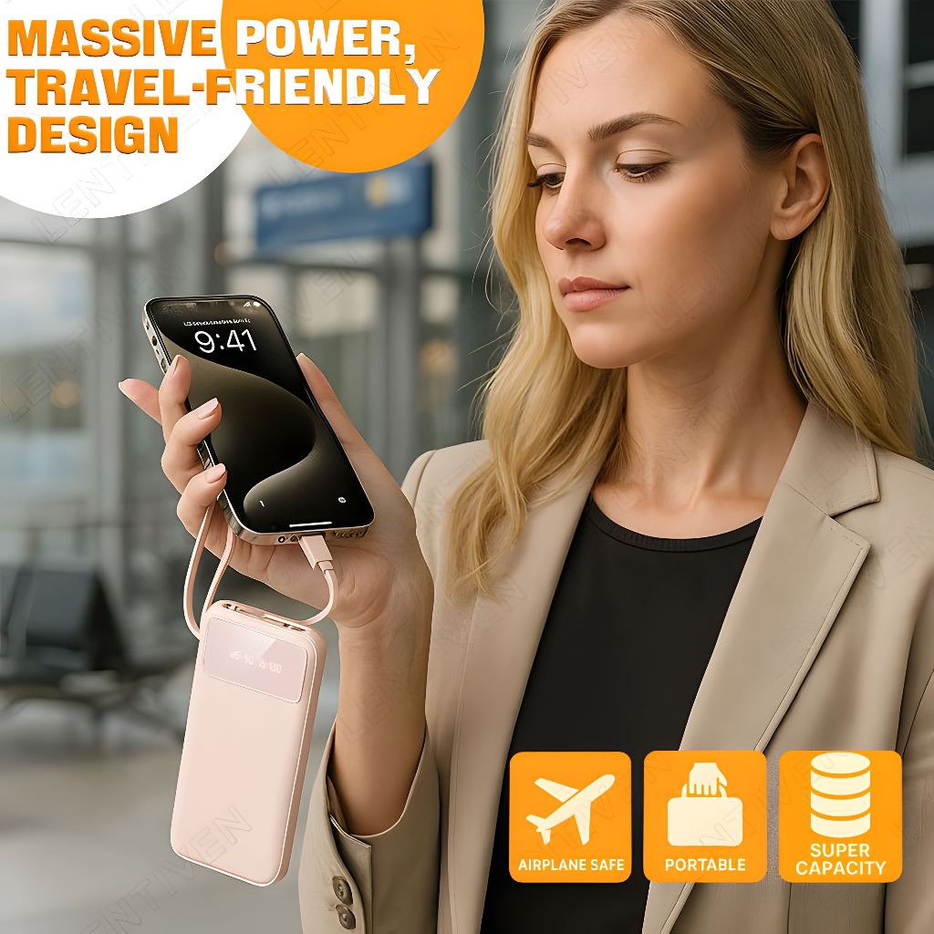 Lentiven 30000Mah Powerbank Mini Fast Charging 4 Kabel Lightning & Type C For Iphone/Android Bh356