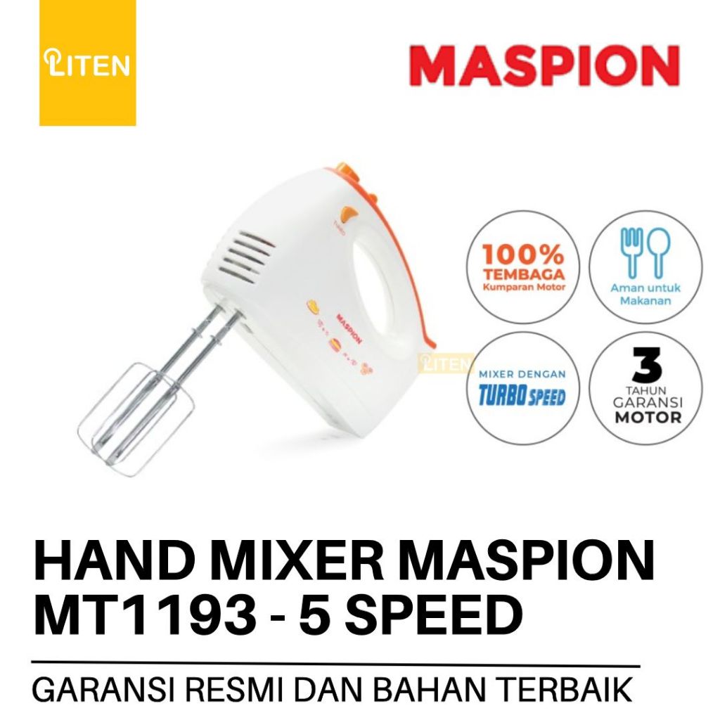 MASPION MT1193 - Electric Hand Mixer Pencampur Elektrik / Mixer Tangan 5 Kecepatan 200 watt MT 1193