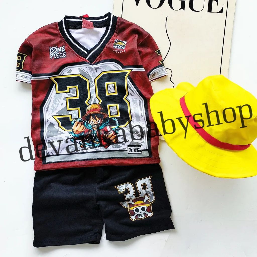 Pakaian Anak Laki Laki Setelan Jersey Premium Anak Laki Laki Motif One Piece Bisa Pakai Topi Untuk Umur 110Tahun