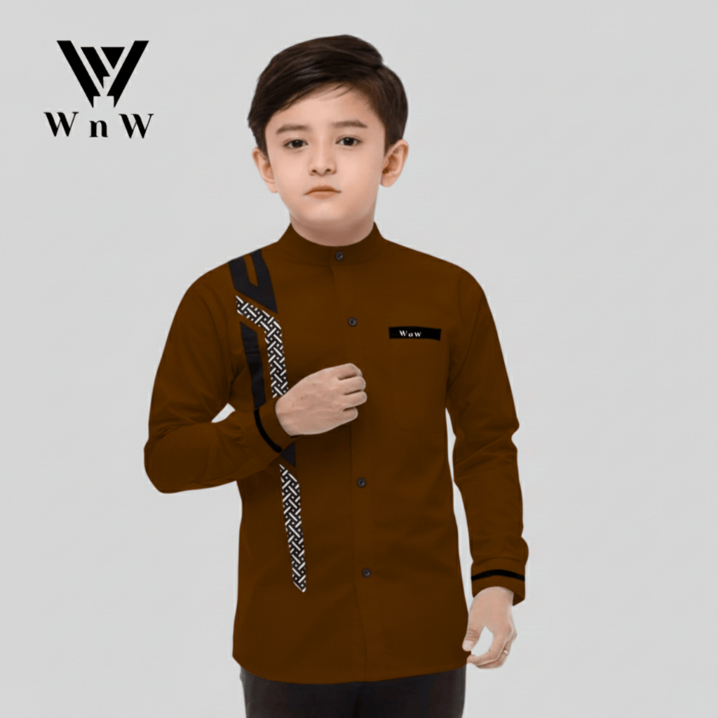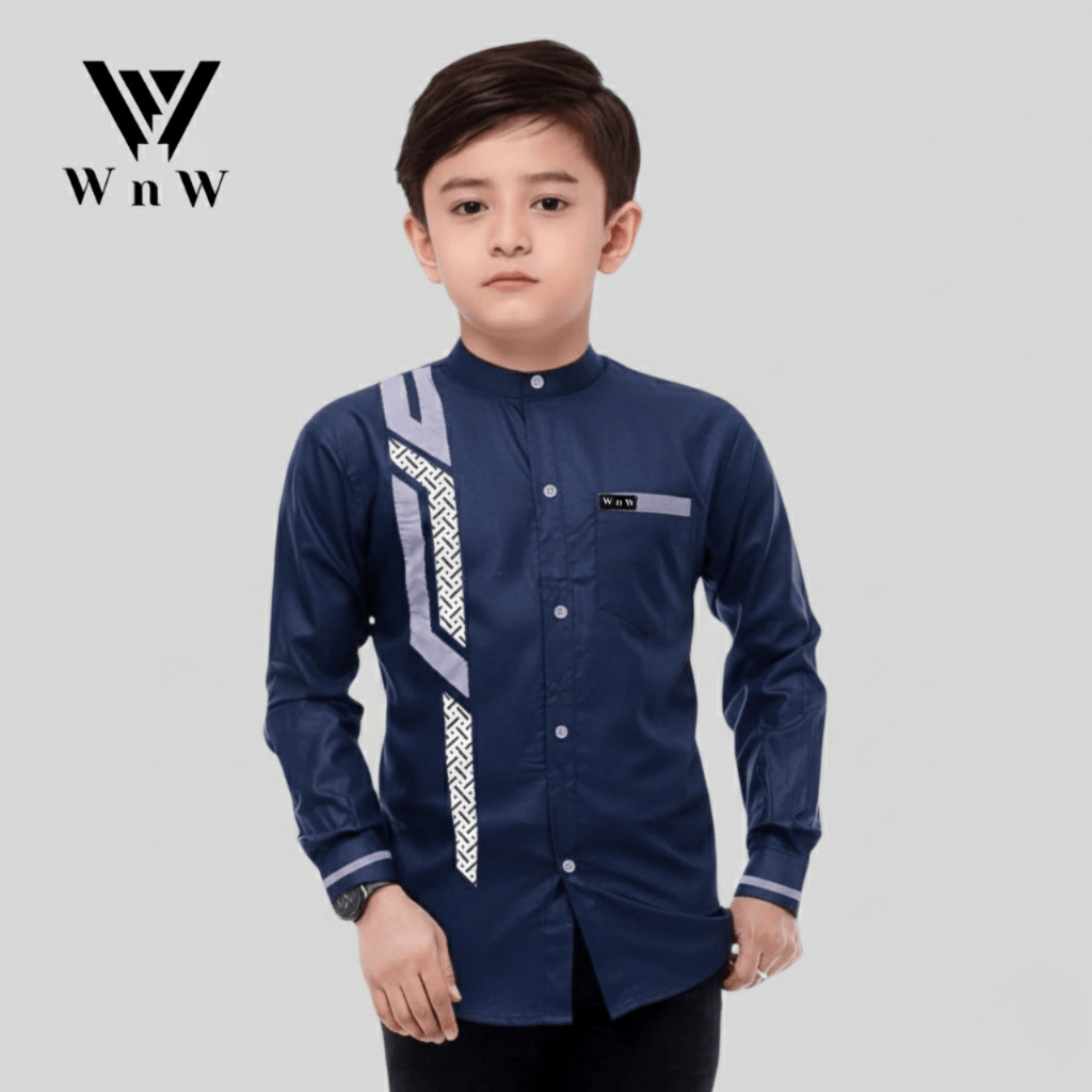 Baju Koko Anak Laki Laki Lengan Panjang Motif Sinergi Katun Premium