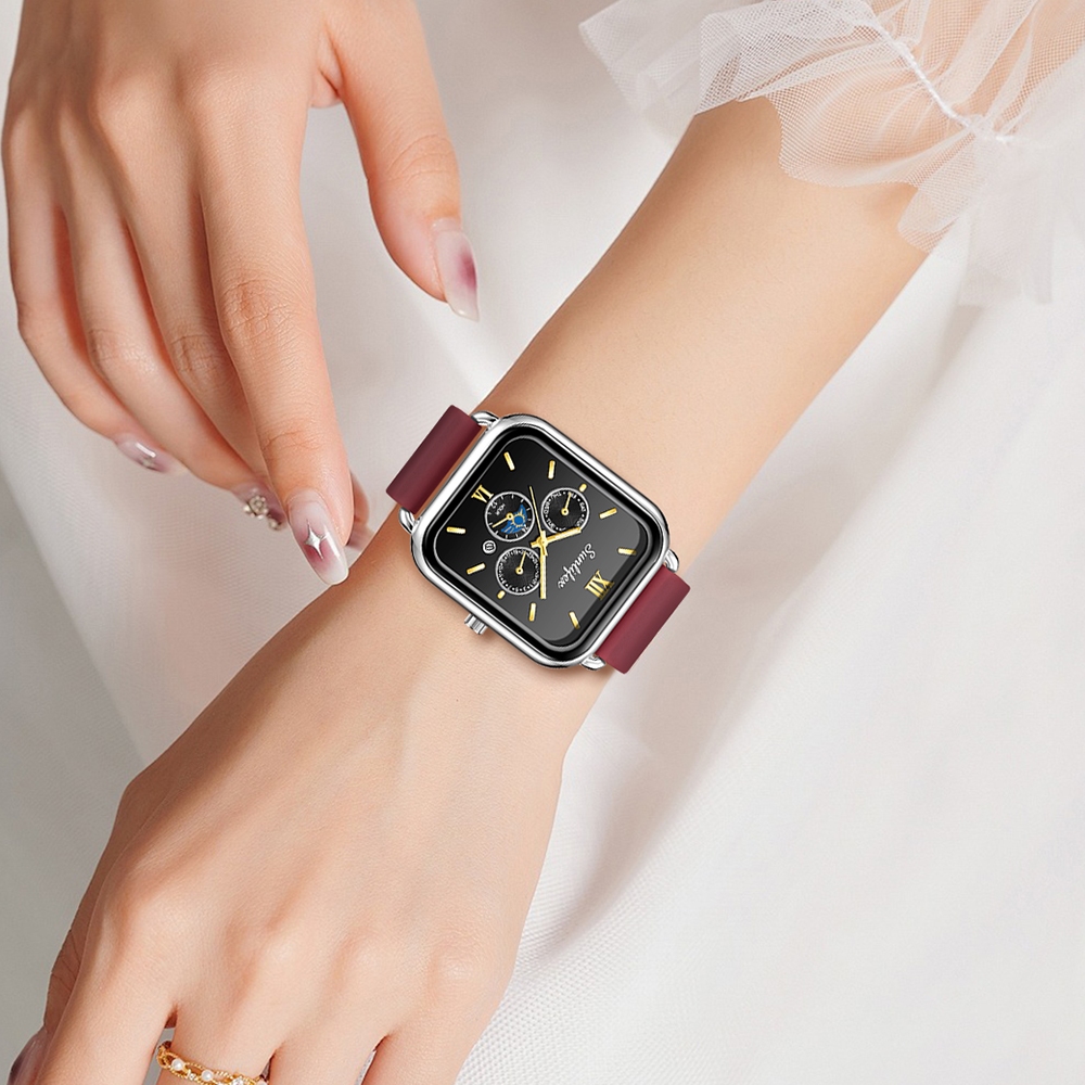 Jam Tangan Wanita Quartz Korean Style Elegan Bercahaya Tali Silikon – Sunlifex B003