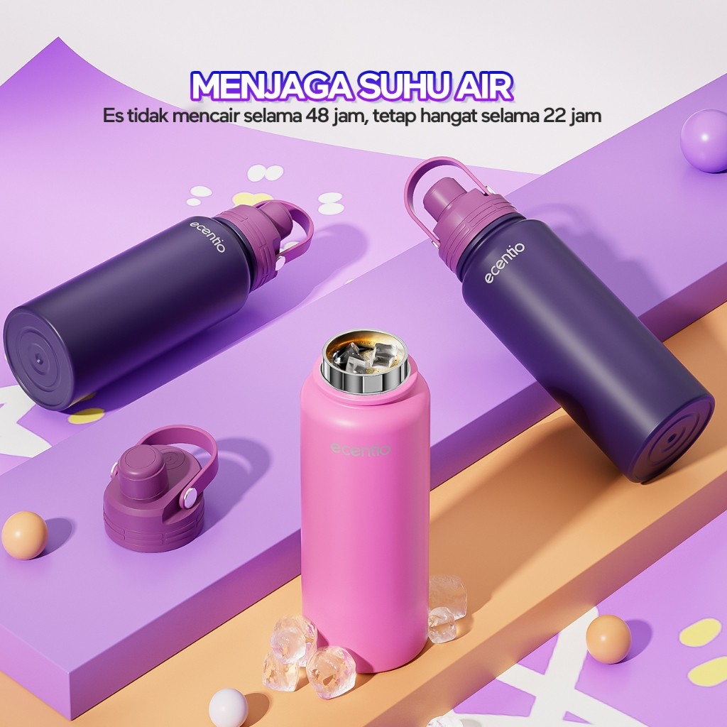 ECENTIO tumbler Stainless 800ml 1L aesthetic Thermos Botol minum ACC7