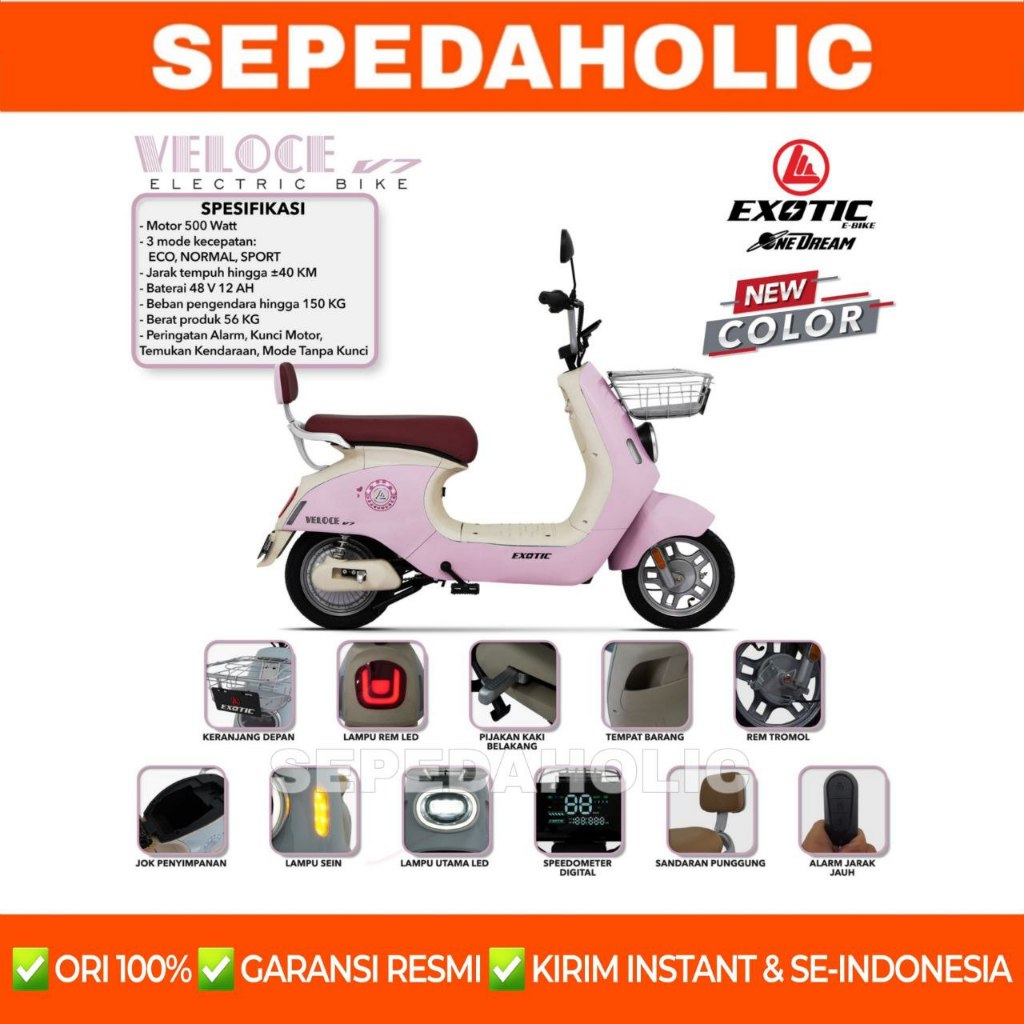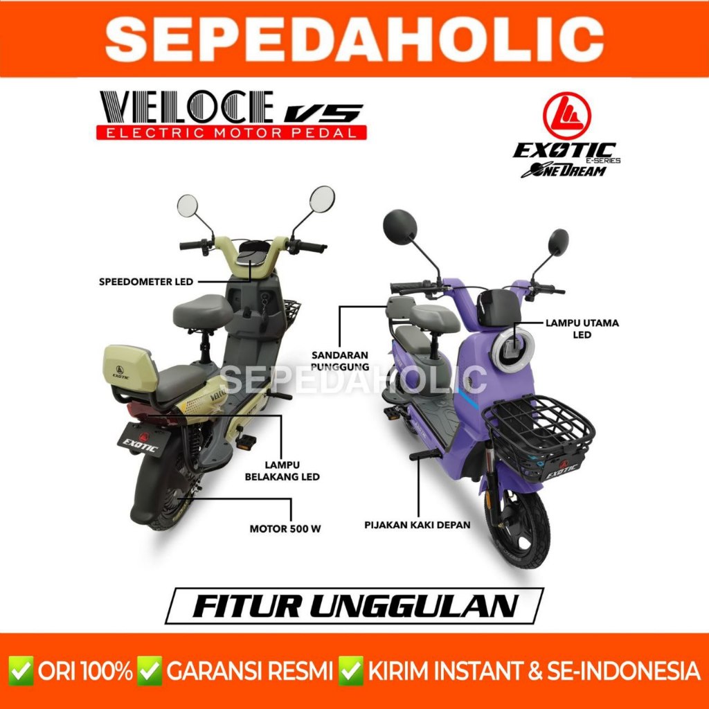 SEPEDA LISTRIK EXOTIC VELOCE V7 / V5 BY PACIFIC 500 WATT SEPEDA LISTRIK DEAWASA GRATIS ONGKIR