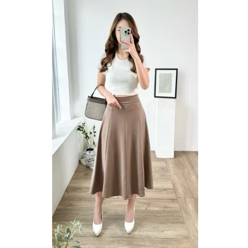 Rok Midi Wanita Kekinian Audy Skirt Wanita Korean Style Scuba Premium – Rok Kerja Casual Kantor Pesta