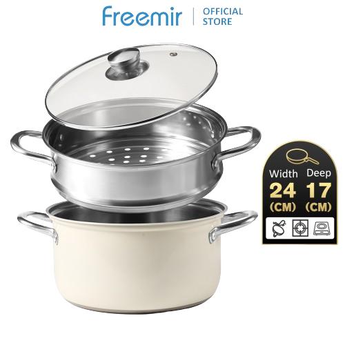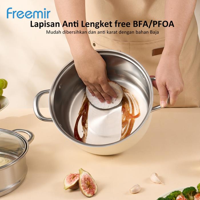 [freemir] Steamer Kukusan Stainless Steel 2 Susun Beige Pengukus Serbaguna Kapasitas Besar
