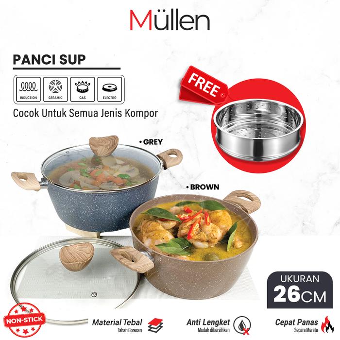 Panci Soup Brown 26cm, Panci Soup Brown 26cm + Kukusan