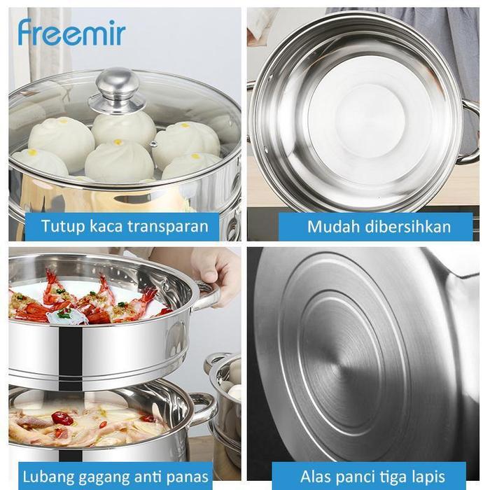 [Crehom Exclusive] freemir Panci Stainless Kukus 2 Susun 26cm Kukusan Anti Karat Stainless Steel 304