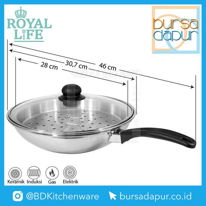 Royal Life Stainless Wok Steamer 28 / Penggorengan + Kukusan
