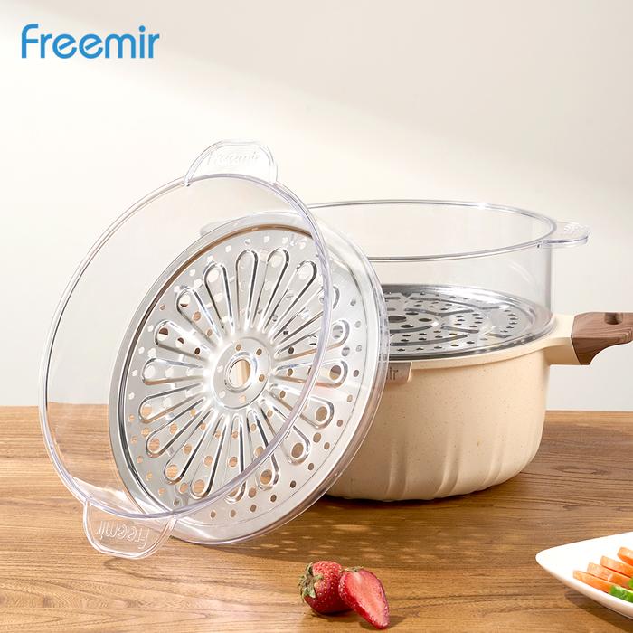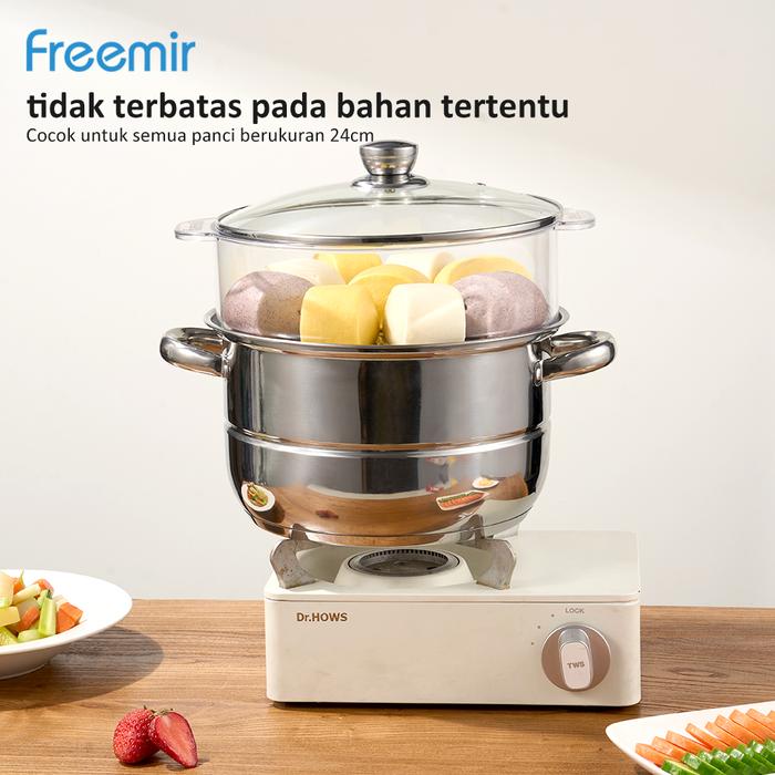 (MEGA SALE) freemir Kukusan Steamer Transparan 24cm Tatakan Stainless Food Grade Kukusan Bening