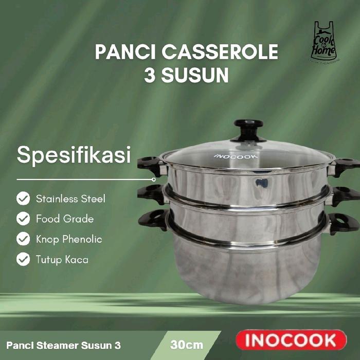 Panci Kukus/Steamer 3 susun 30 cm Stainless Steel INOCOOK - BLACK & Magenta