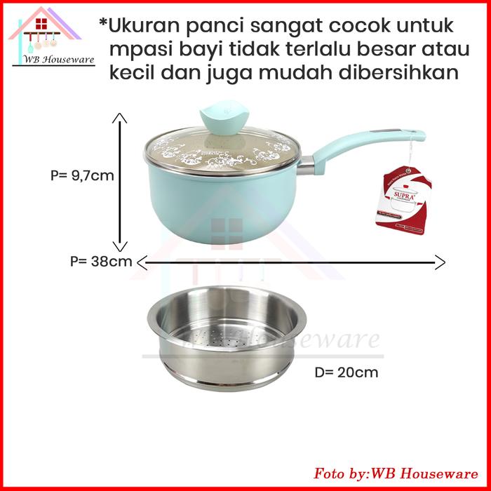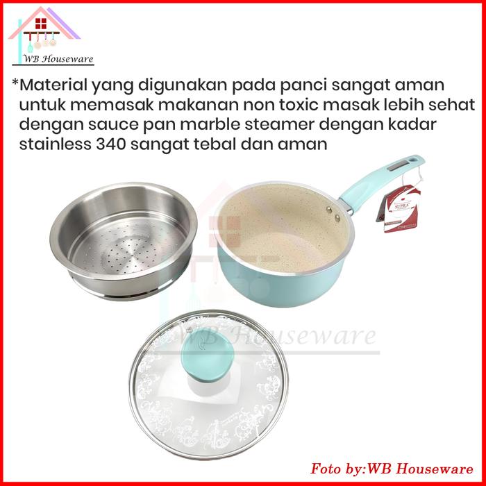 SUPRA panci mpasi bayi + steamer serbaguna / sauce pan 20cm seri pastel white marble anti lengket /
