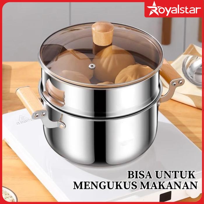 [] Royalstar Set Panci Sup Dengan Kukusan 2 Tingkat Panci Stainless Steel Tutup Kaca Anti Karat