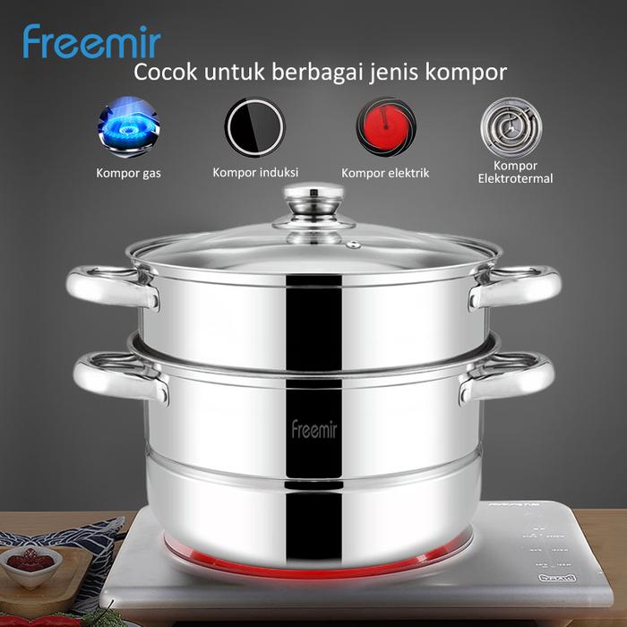 [AF] freemir Kukusan Aesthetic Panci Kukus 2 Susun Stainless Steel Wajan Anti Lengket Panci