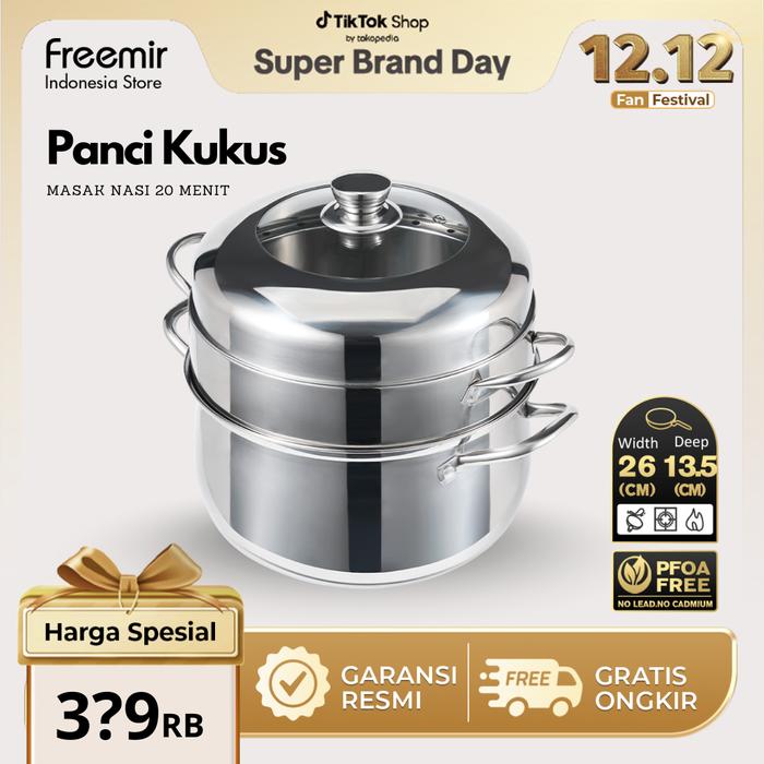 [Crehom] freemir Panci Kukus 2 Susun Masak Nasi 20 Menit Stainless Steel Serbaguna Lebih Tebal
