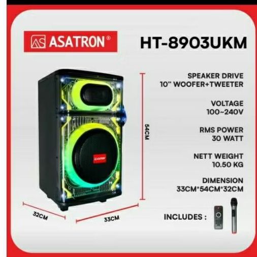 Speaker Bluetooth Asatron 10inch Mic Wireless HT8903 Wooden Box 8903