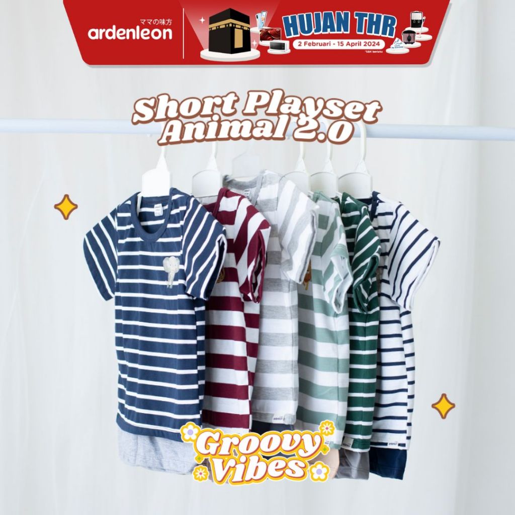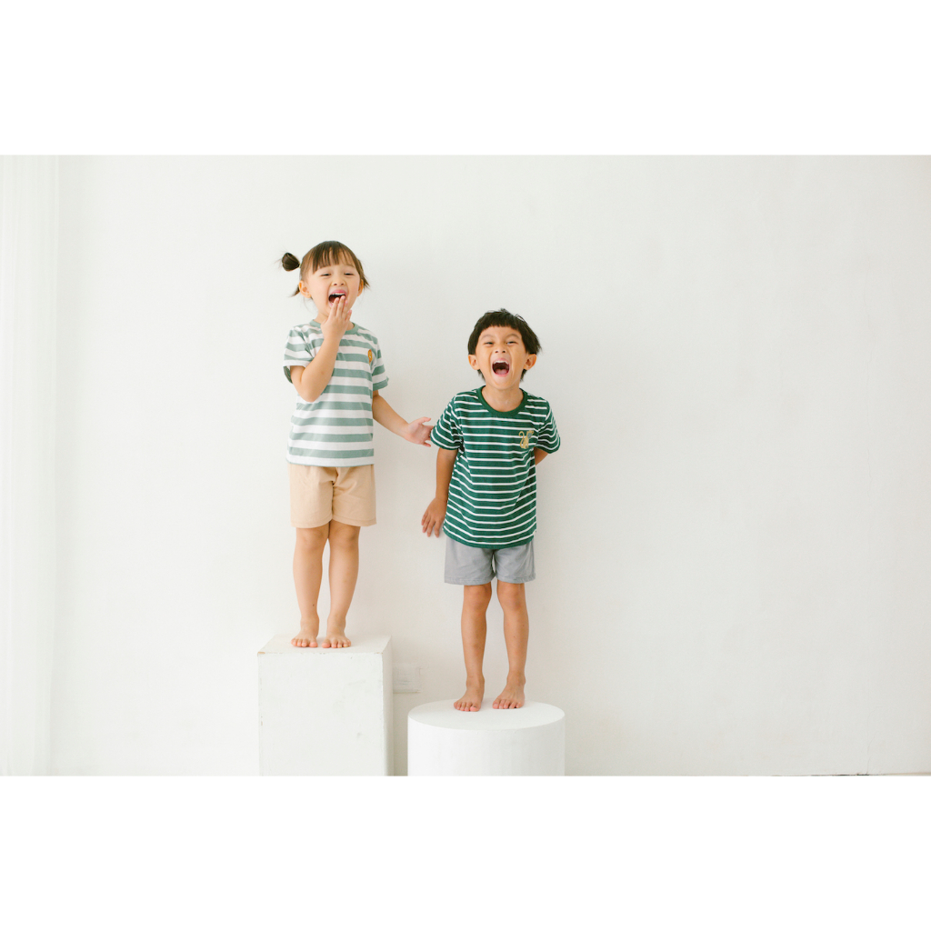 Pakaian Anak Cowok Cewek Setelan Anak Kaos Anak Short Playset Stripe Animal 2.0