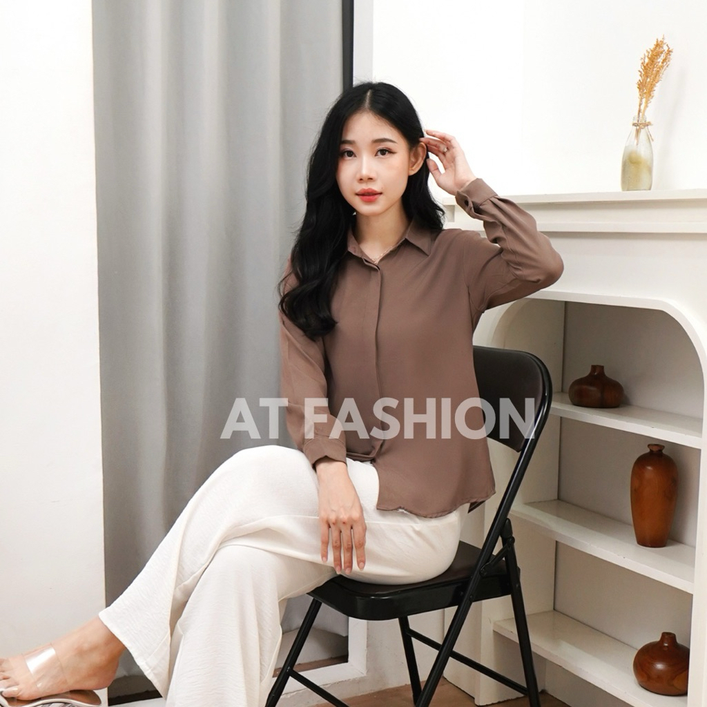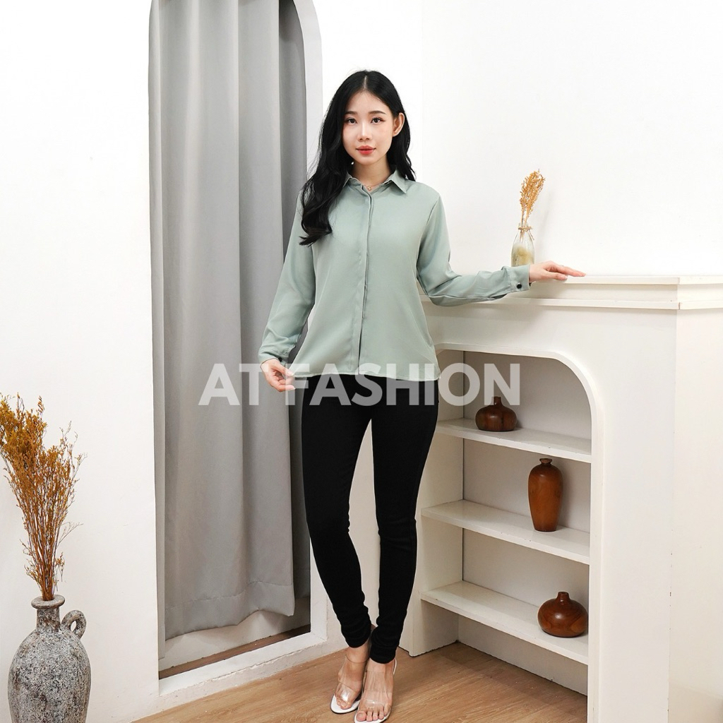 Kemeja Polos Shakila Twill, Kemeja Basic Wanita, Kemeja Kerja Wanita