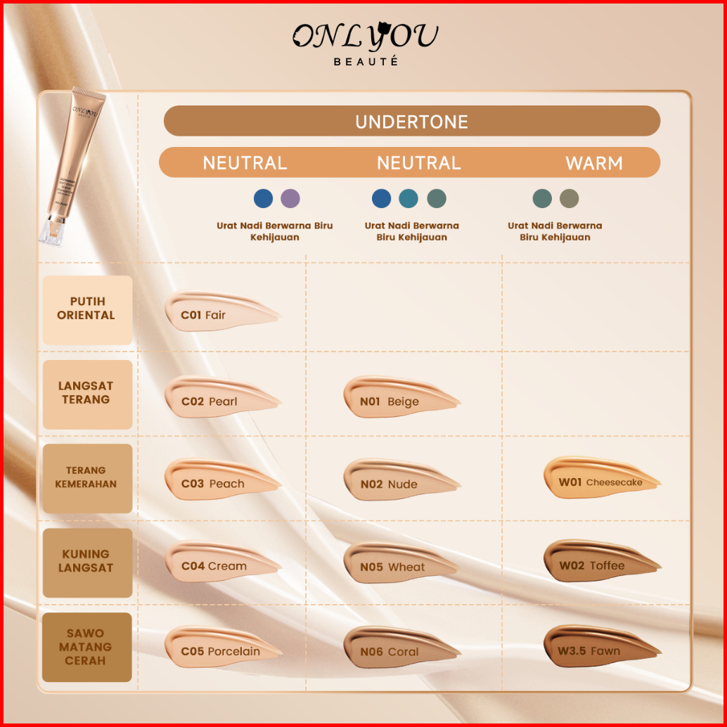 New Upgrade Onlyou Serum Foundation 24h Jam Tahan Lama Ultrawear Soft-focus Spf25 Pa Concealer Mengecilkan Pori-pori Mak