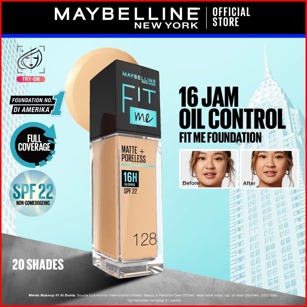 Maybelline Fit Me Matte Poreless Liquid Foundation Make Up 30ml Spf 22 Makeup Ringan High Cover 16 Jam Oil Control Cushi