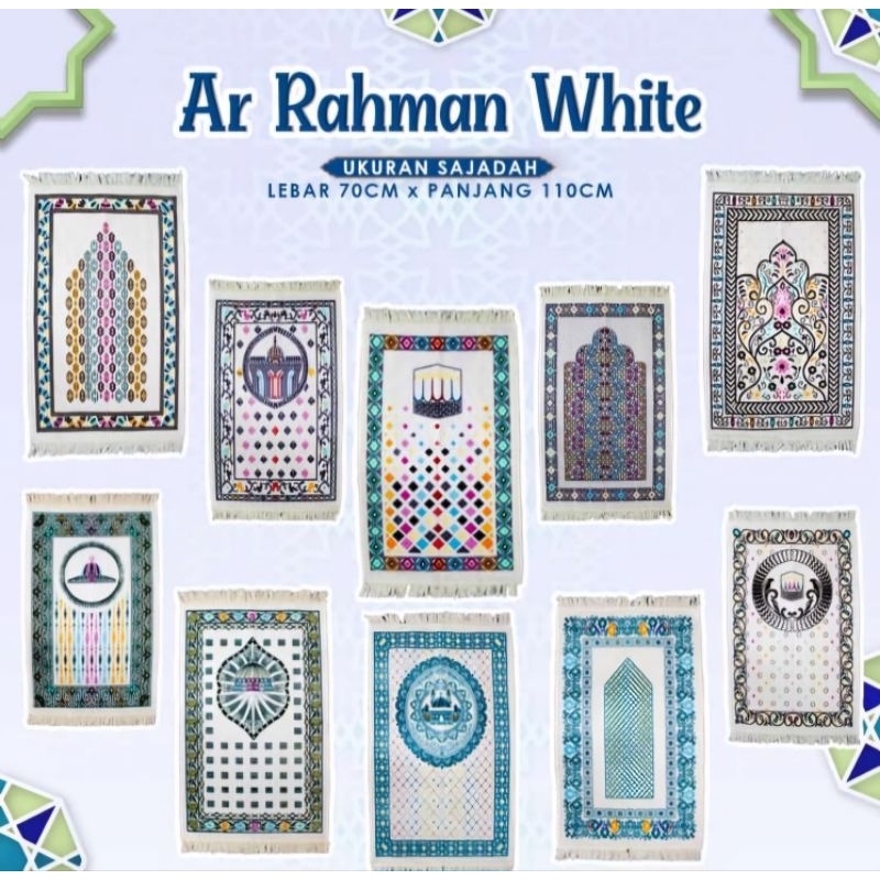 Sajadah Turki Premium Warna Putih Motif Ar Rahman Elegan dan Nyaman