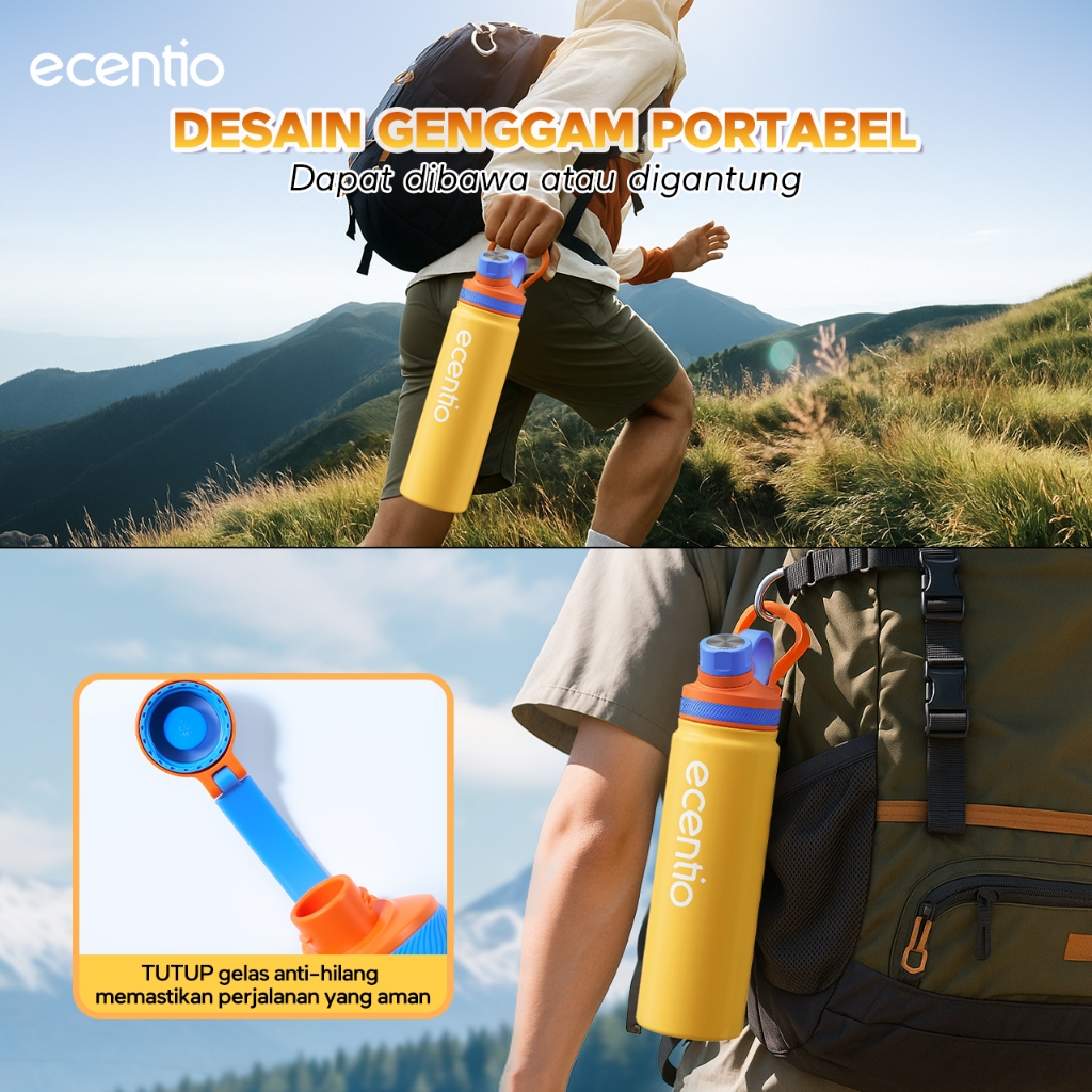 ecentio tumbler Stainless 316 outdoor 800ml sport olahraga aesthetic lari Portable Tetap dingin selama 24 JAM Thermos Botol minum besar