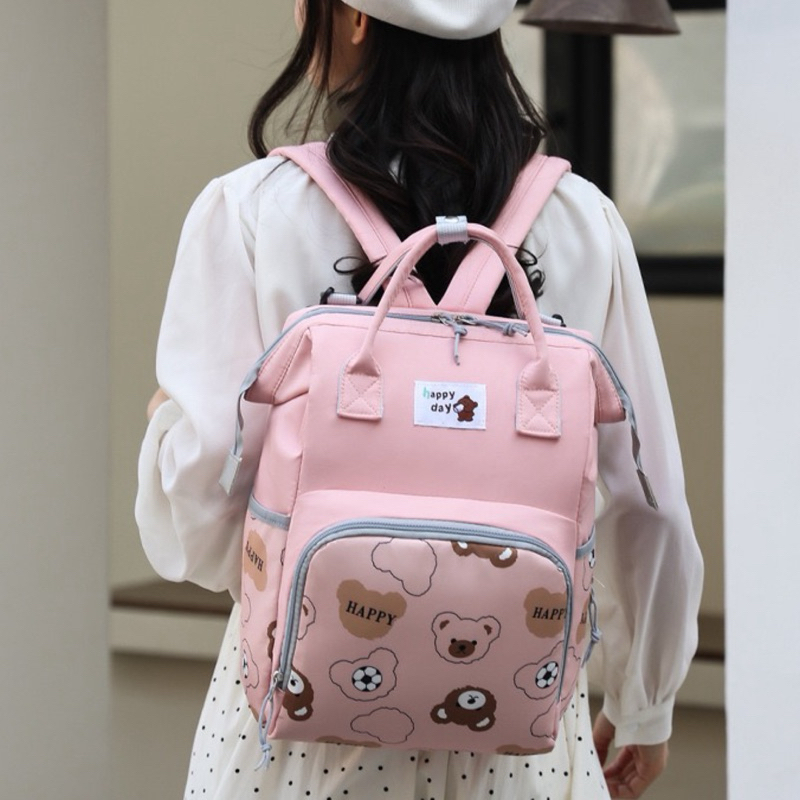 TAS BAYI 6039 - Tas Ransel Diaper “Bear Happy Day” Diaper Bag Tas Ransel Travelling Ibu Bayi - C1