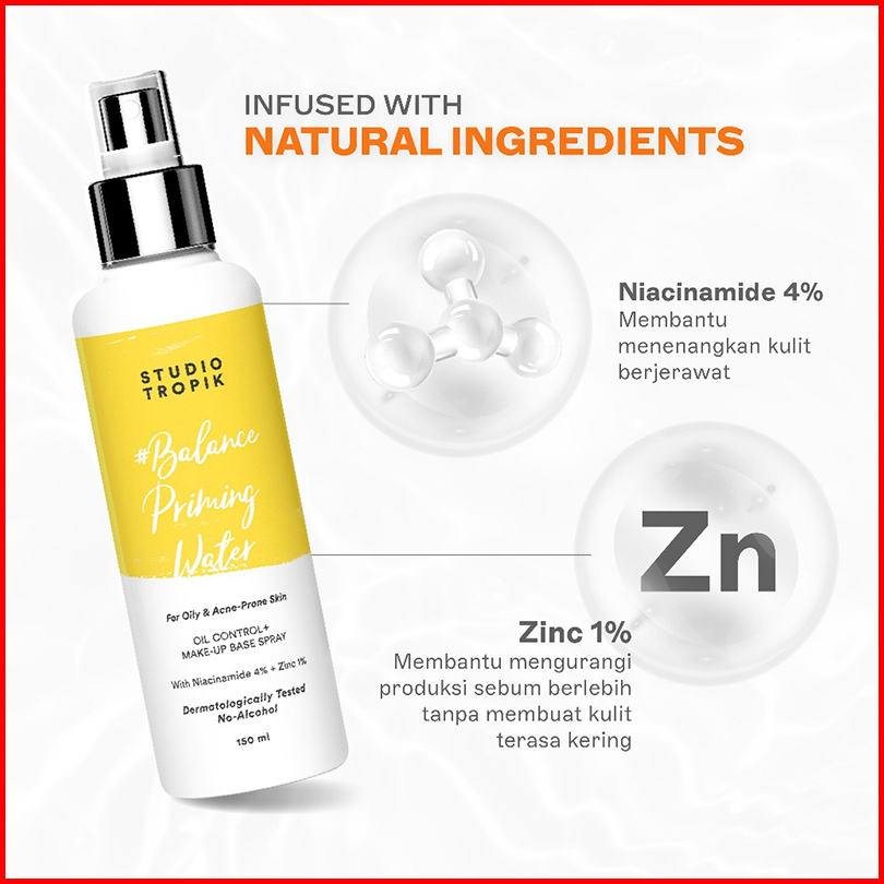 Studio Tropik Balance Priming Water 150ml - Studio Tropik Priming Water Primer Spray Hydrating Face Mist Untuk Wajah Lem