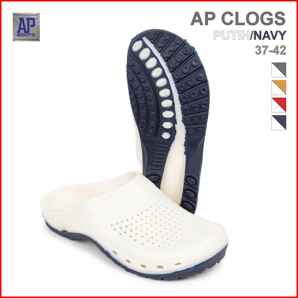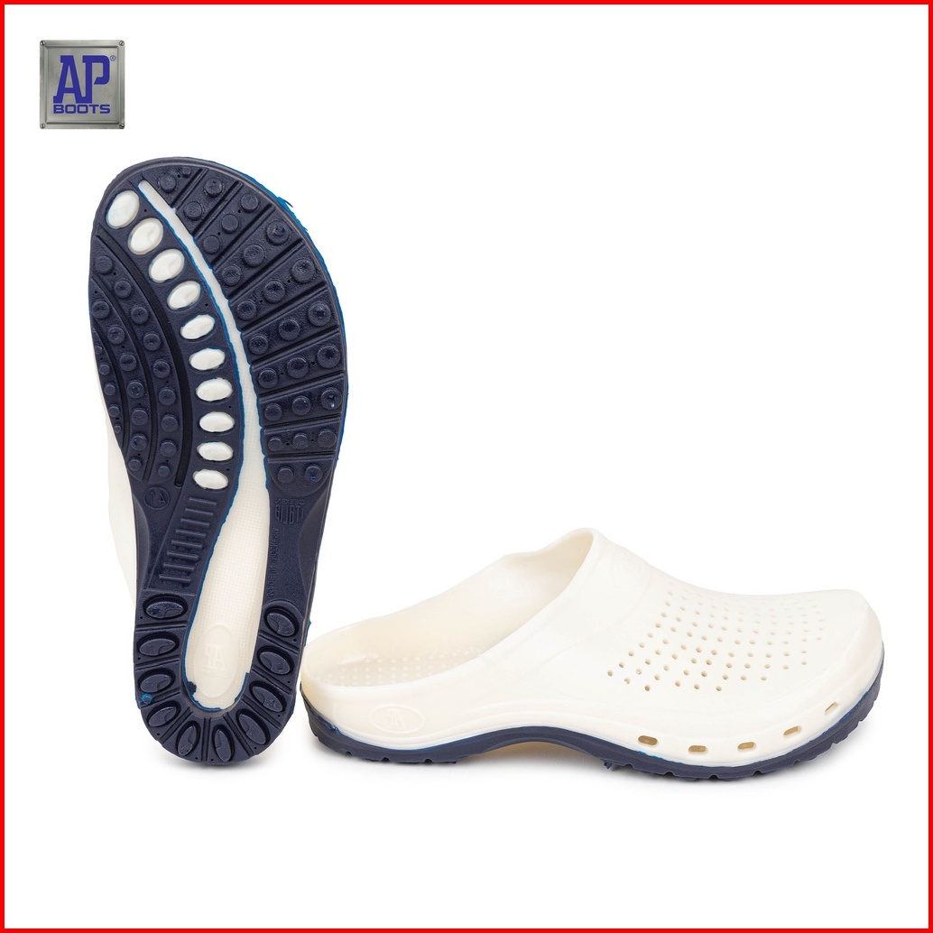 Ap Boots Ap Clogs Putih Navy - Sepatu Slip On Pvc