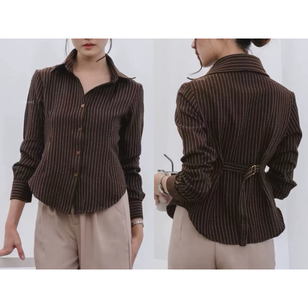 Fitted Shirt Kemeja Salur Kantor Wanita Working Baby Katun