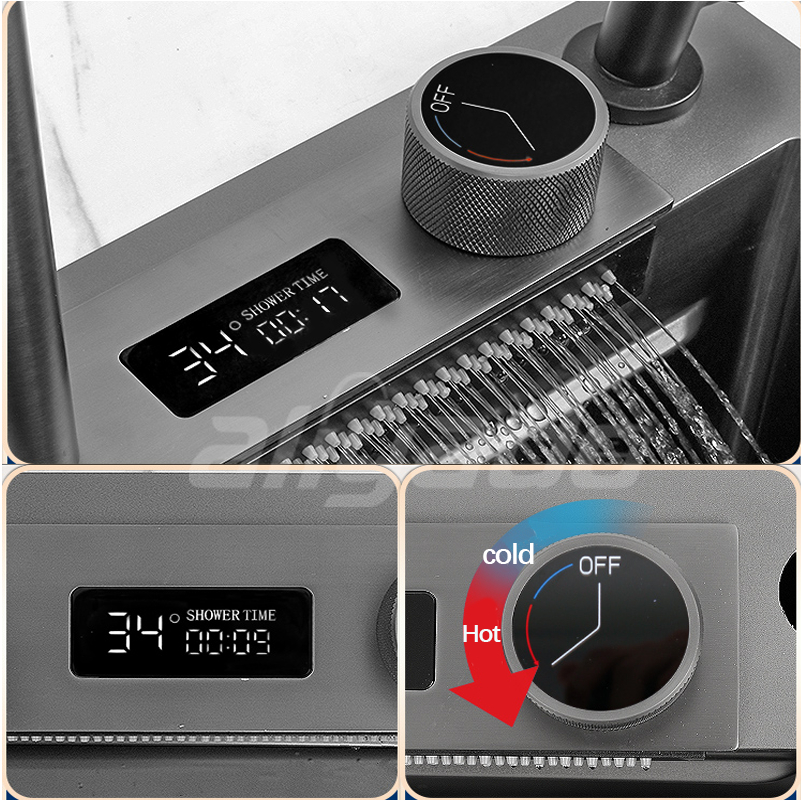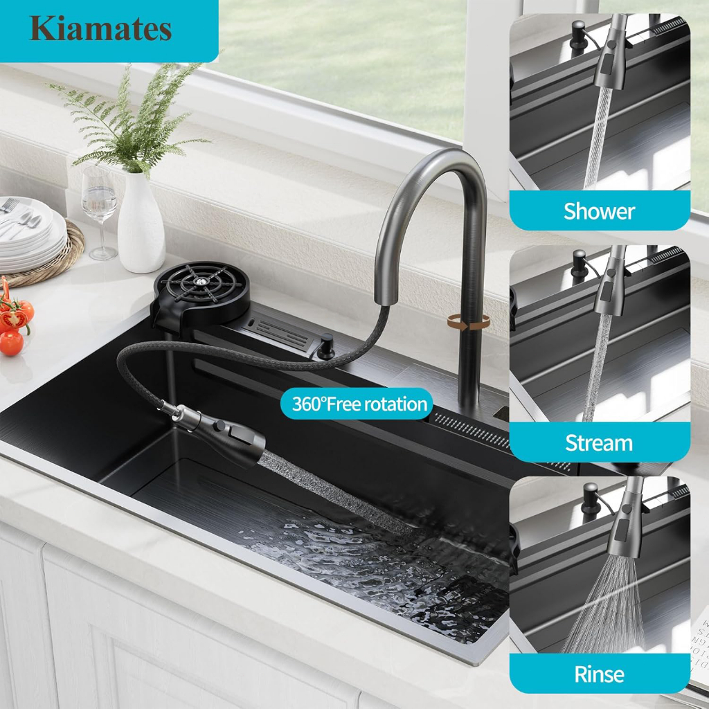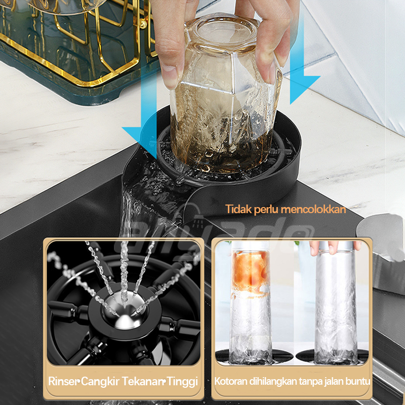 ⚡Best Seller⚡ Kitchen Sink Hitam Piano 2 Tuts Stainless Steel 304 Luxury Wastafel LCD & LED, Includes Tempat , Ukur