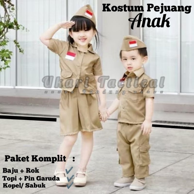 Baju Kostum Anak Pejuang Pahlawan Veteran Bung Tomo Lengan Panjang Seragam Karnaval Lakilaki Perempuan