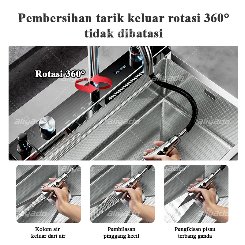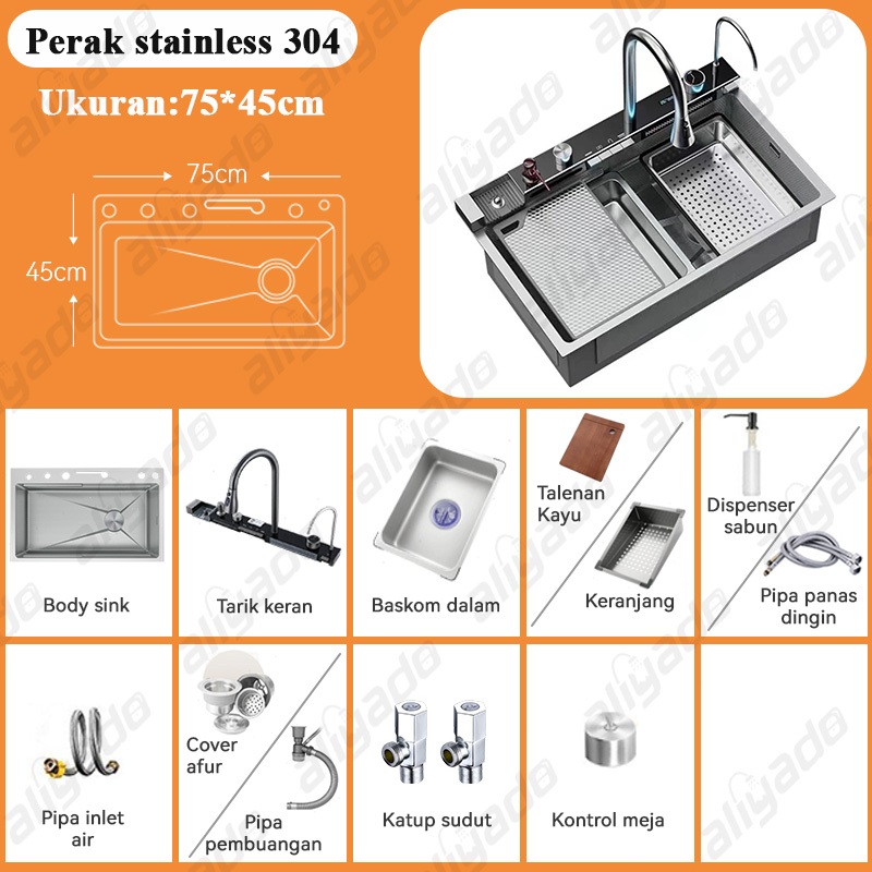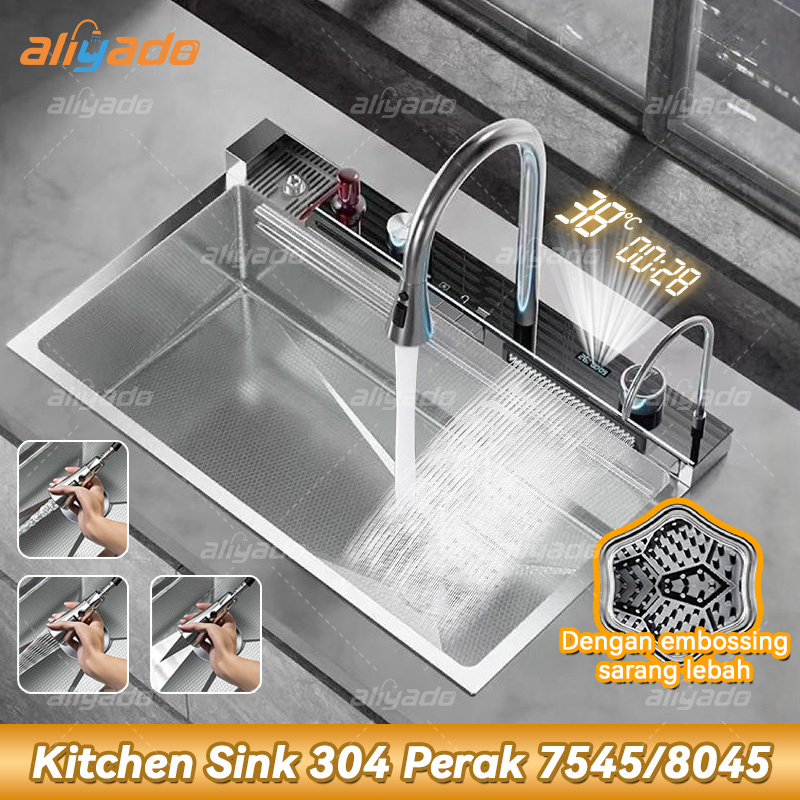 ✨Luxury Series✨ Kitchen Sink Perak 4+1 Tuts Piano dengan LED& Honey Comb - Wastafel Dapur Premium Stainless Steel 304, K