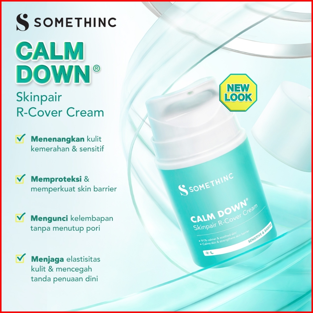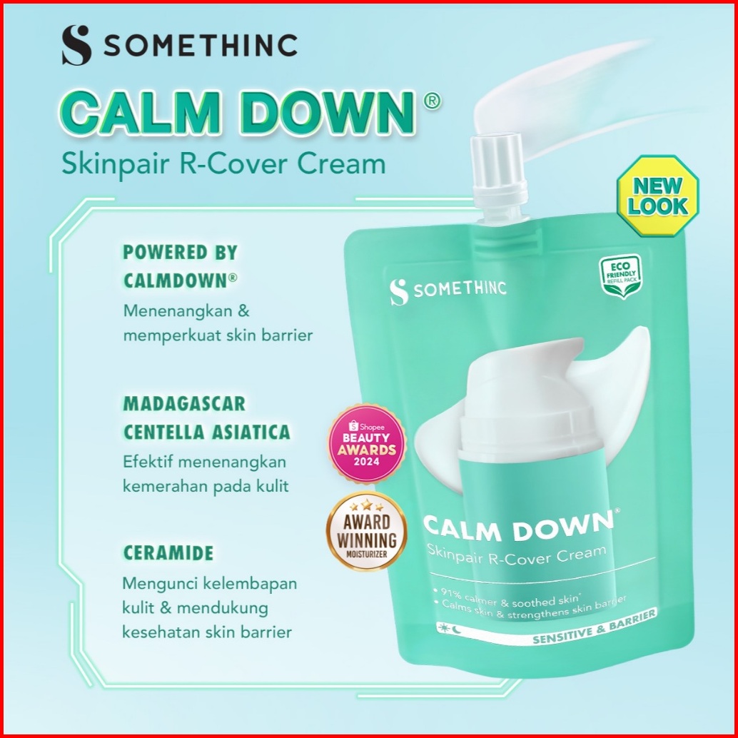 Somethinc Calm Down Skinpair Moisturizer - Pelembap Muka Untuk Kulit Sensitif Kemerahan Kulit Normal. Meredakan Kemeraha