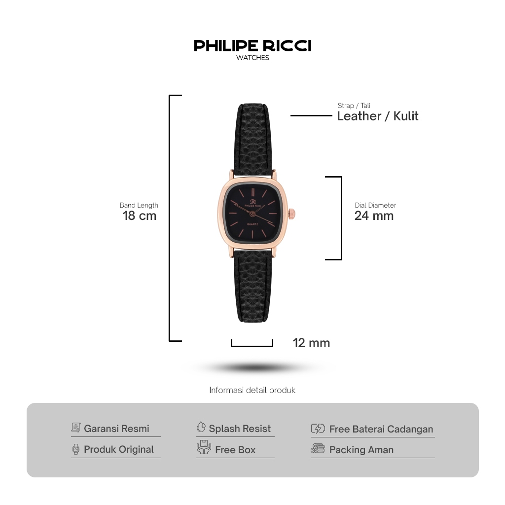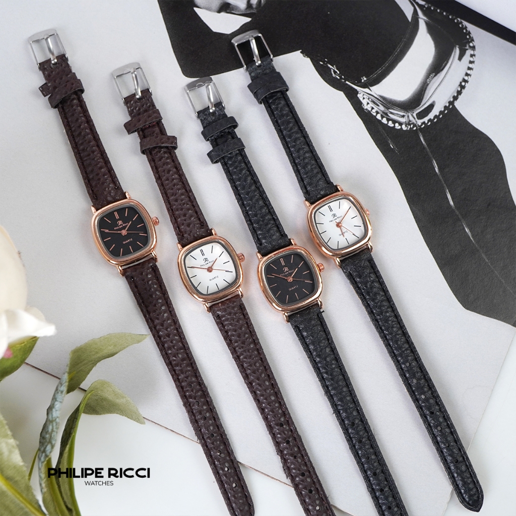 Jam Tangan Wanita Kotak Kecil Tali Kulit Korean Style Free Box – Philipe Ricci 7545