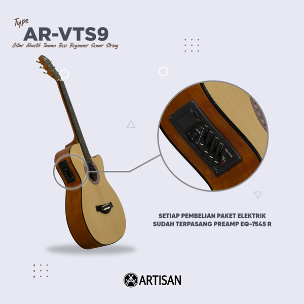 ARTISAN Gitar Akustik Tanam Besi Beginner AR - VTS9 Senar String Guitar