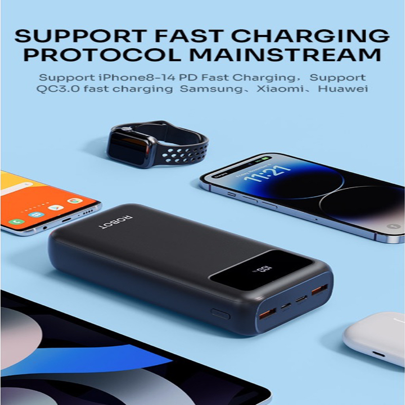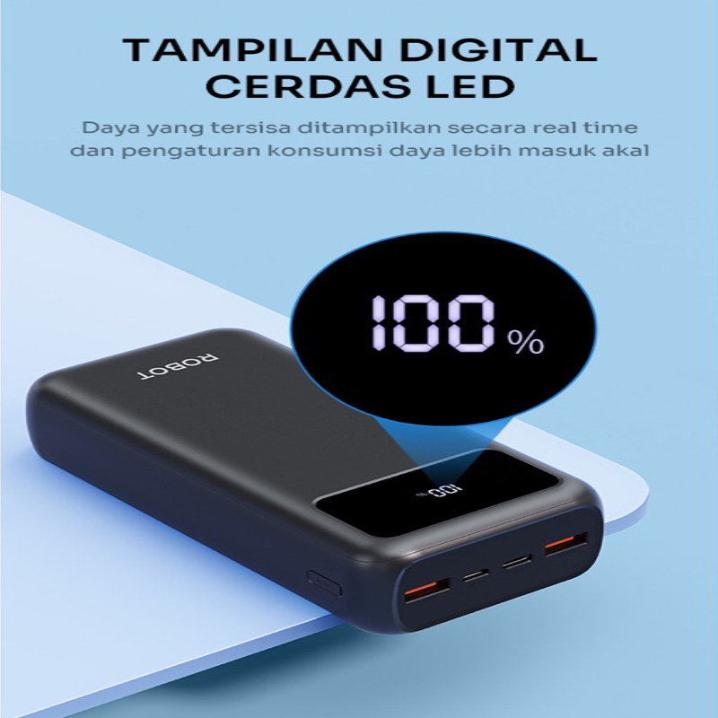 Robot Power Bank Rt32 30000Mah Powerbank 3Output & 2Input 22,5W Quick Charge Pd Qc3.0 Garansi Original Resmi