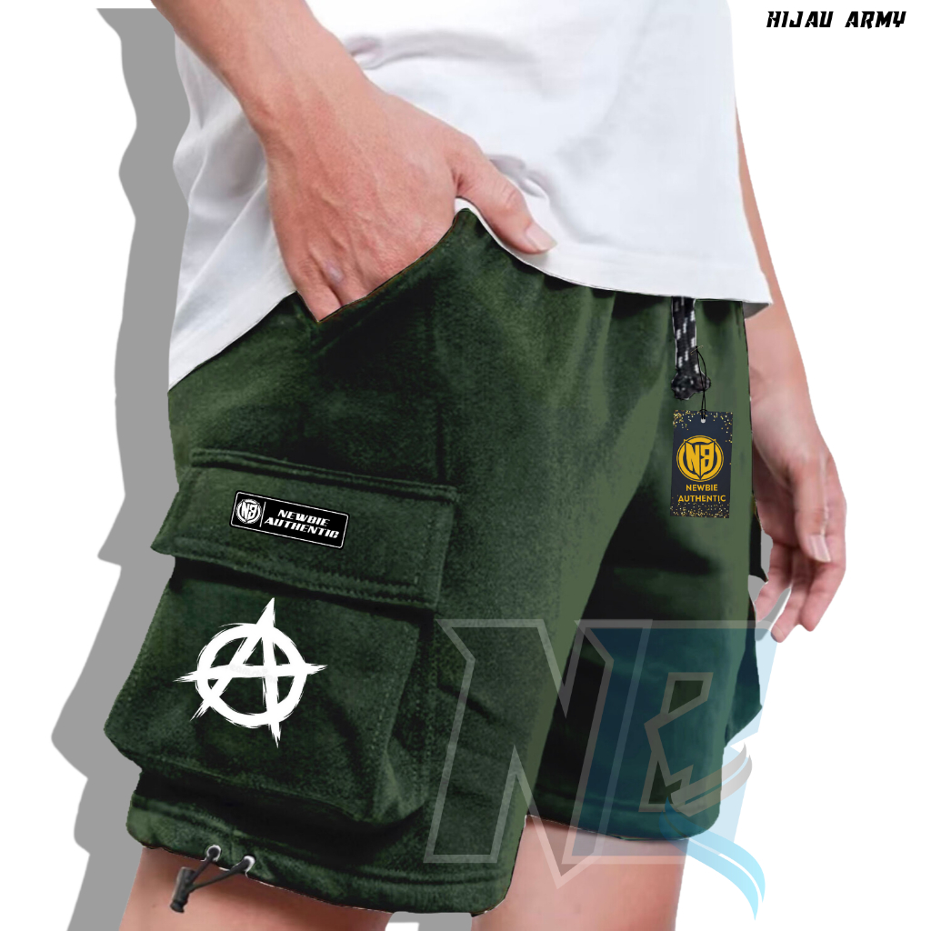 Celana Cargo Pendek Bahan Fleece Premium Warna Hijau Army Banyak Sablon LOGO A Brotshotd Kargo Distro Santai Terbaru Dan Terlaris 2024 Banyak Warna