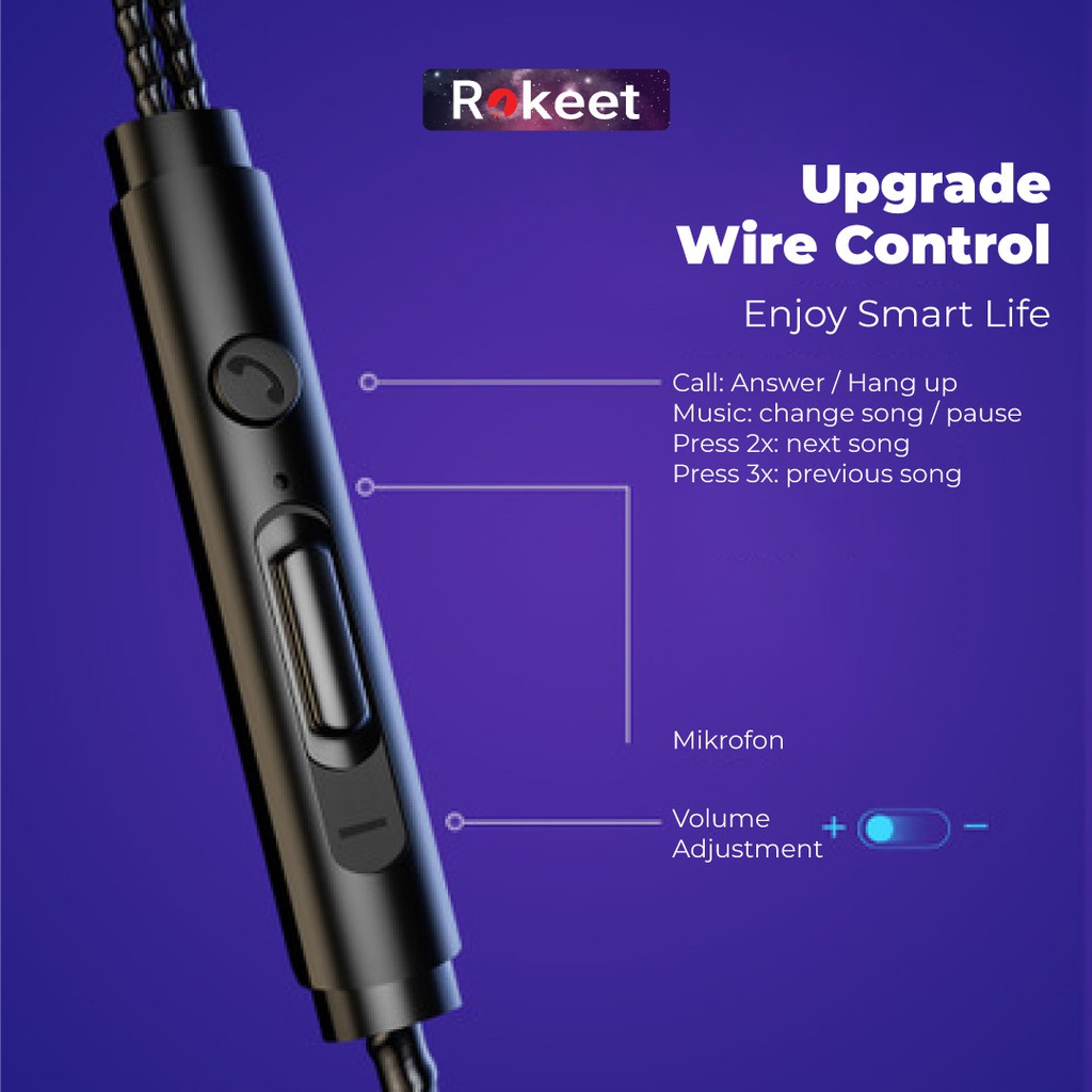 Rokeet Headset Earphone Gaming Mega Bass Wired Jack 3.5Mm Mic For Android Iphone Universal Original