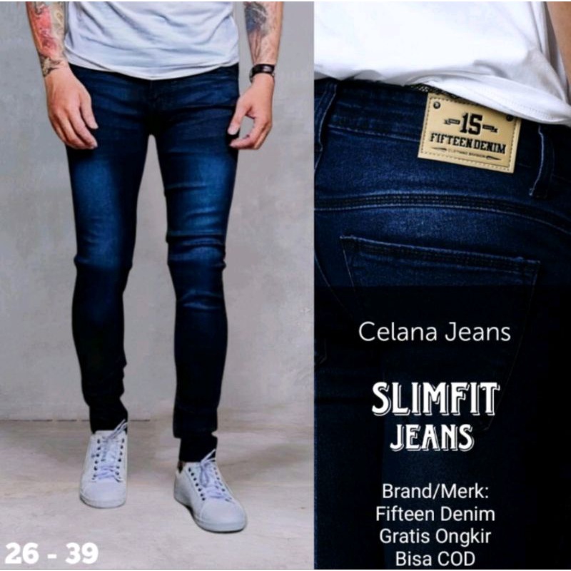 Celana Jeans Pensil Skinny Cowok Slimfit Premium Hitam Size 27/38