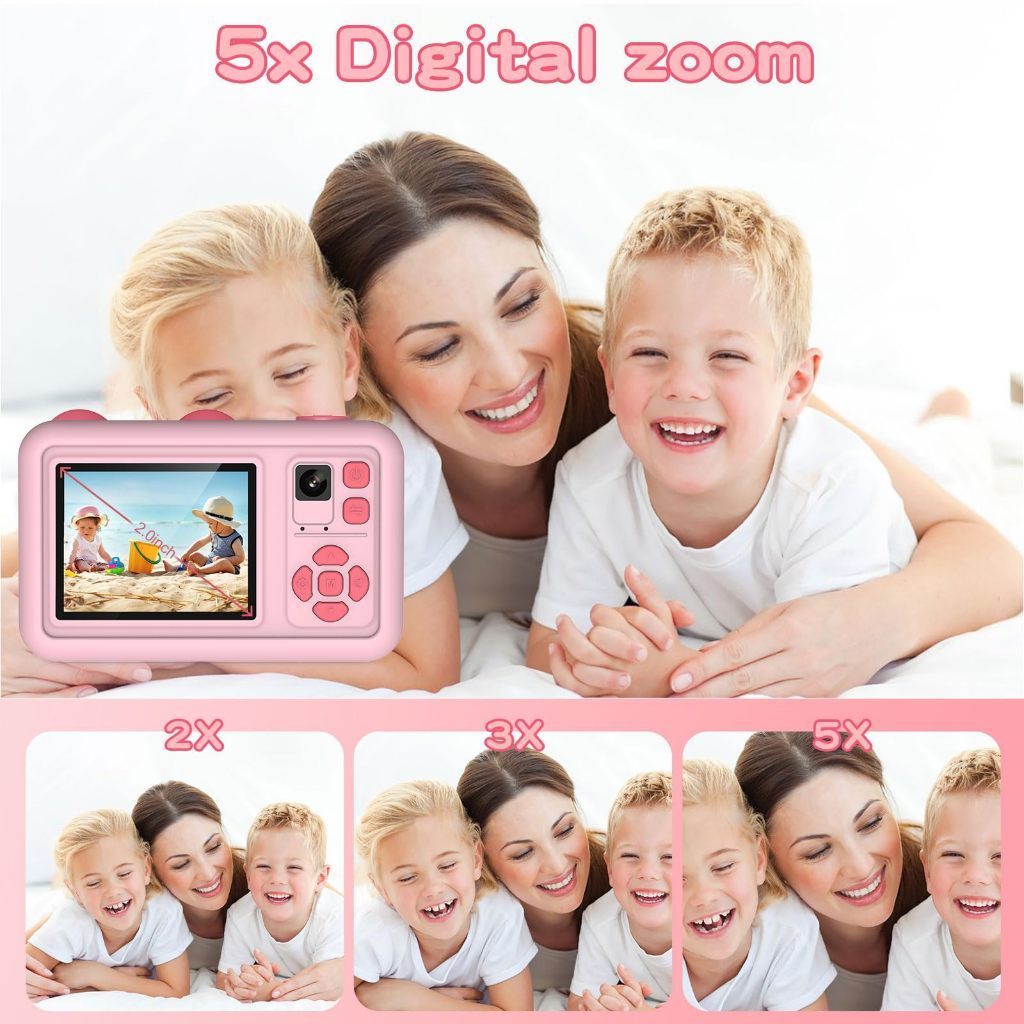 Camera Digital Mini Camera 2.0 Inch IPS HD Screen Video Recorder with Selfie Tripod Children Camera Gift