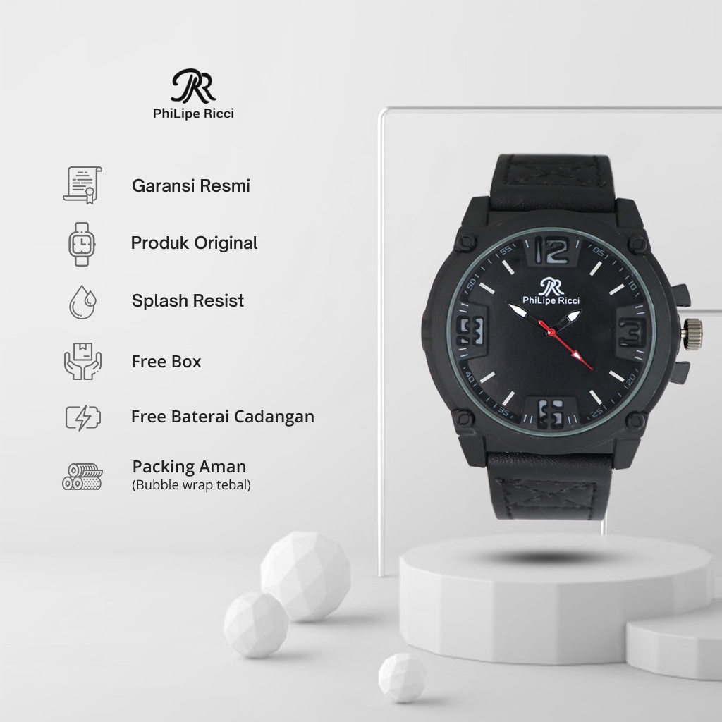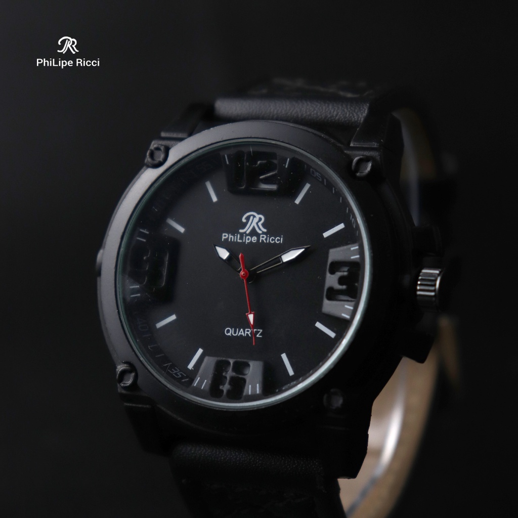 Jam Tangan Pria Analog Quartz Tali Kulit dan Karet Terbaru Free Box – Philipe Ricci KLDRP