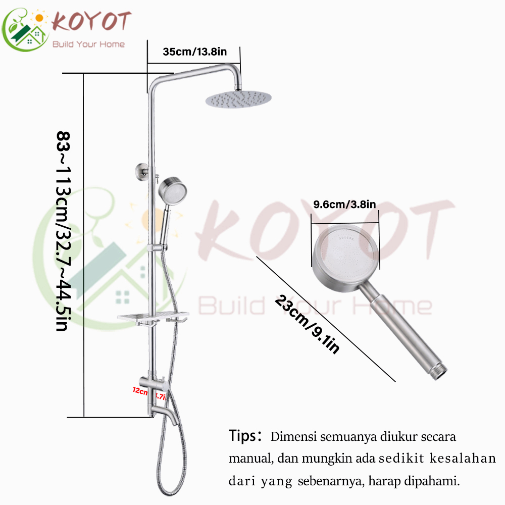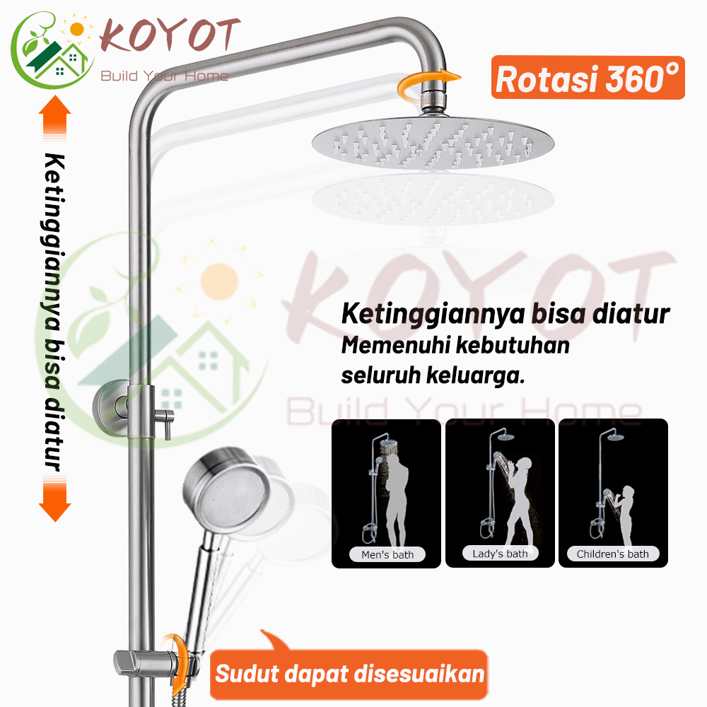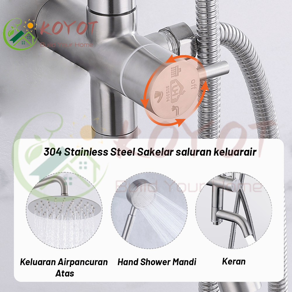 KOYOT Shower Kamar Mandi Full Set Sumber Tunggal 304 Stainless Steel Panas Dingin dengan Kran 3 Ways / Hand Shower Mandi