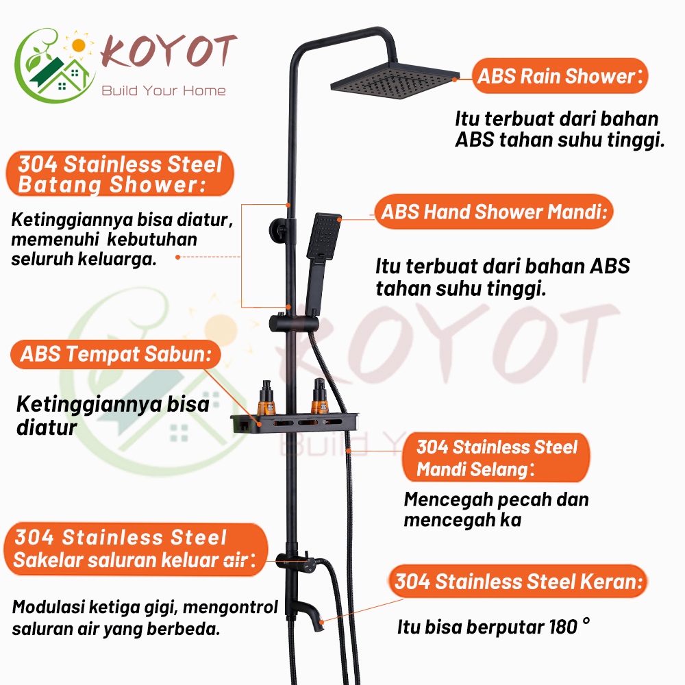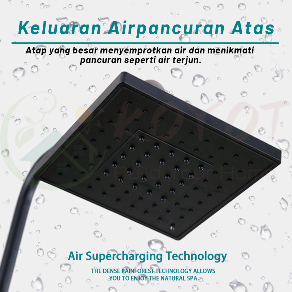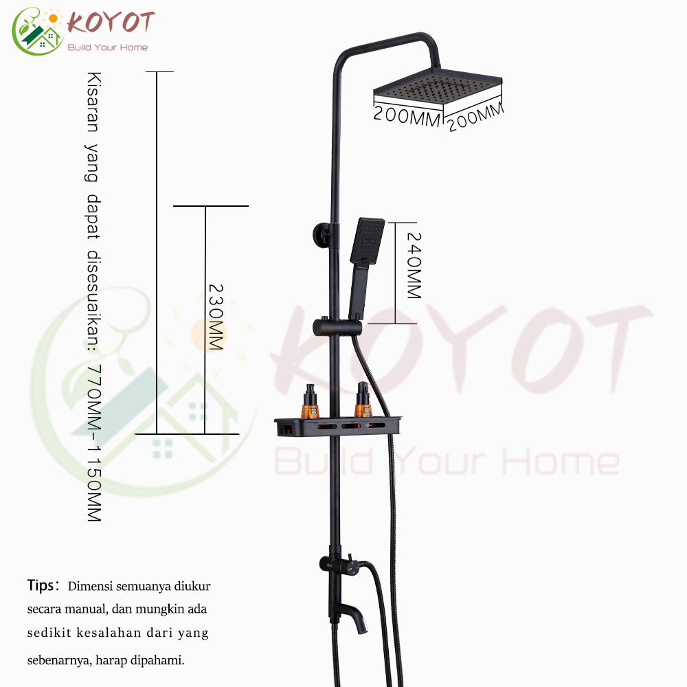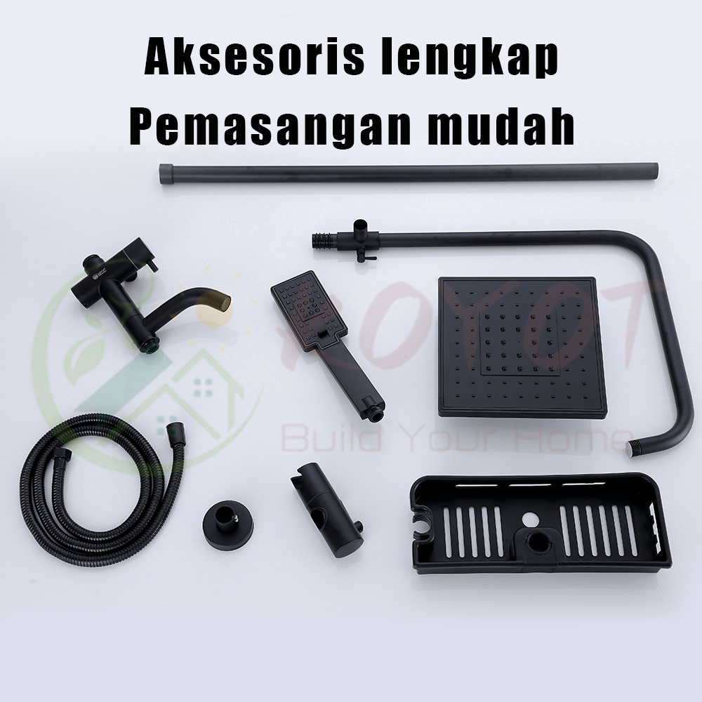 KOYOT Shower Kamar Mandi Full Set Sumber Tunggal Panas Dingin Persegi Hitam Matte dengan Kran 3 Ways / Hand Shower Mandi