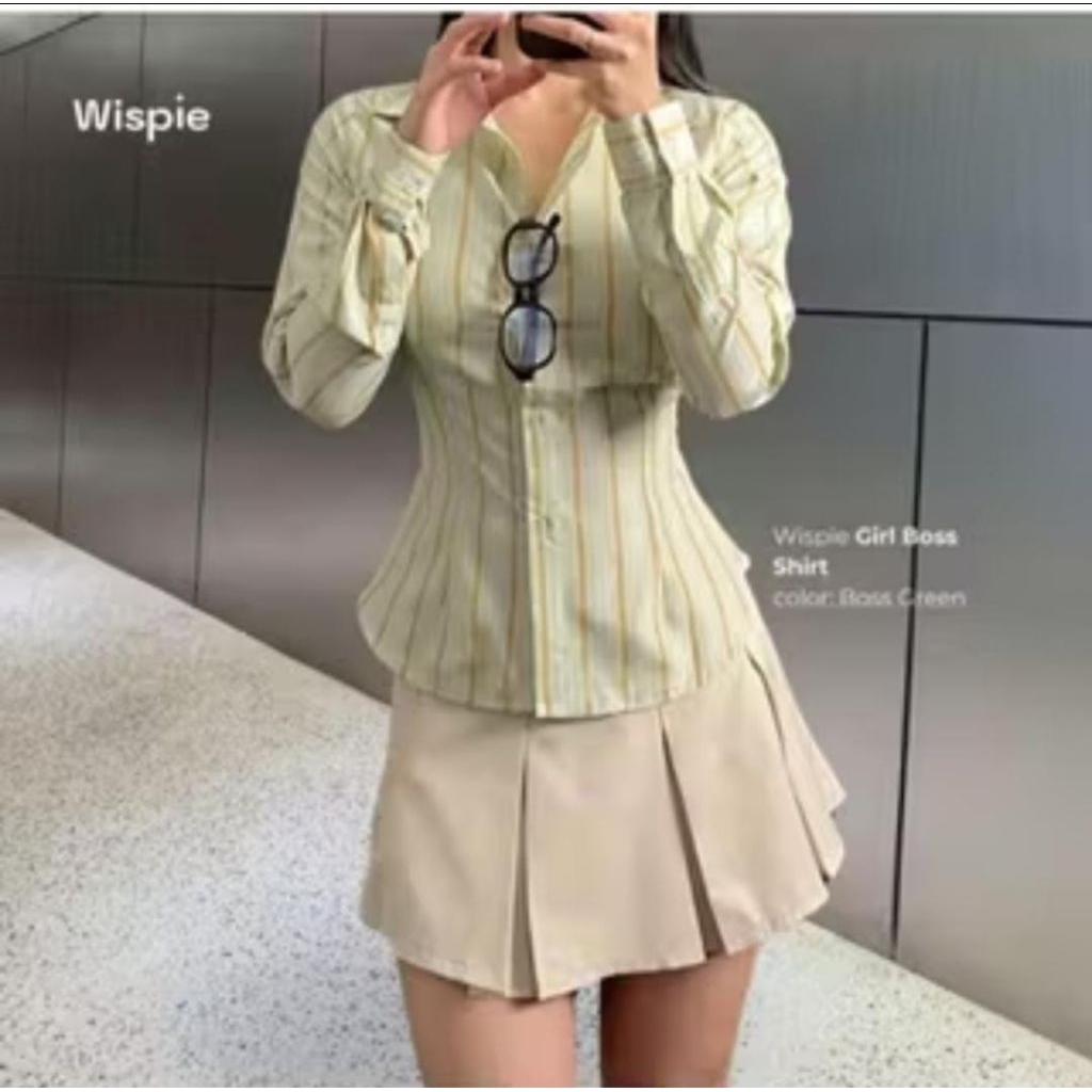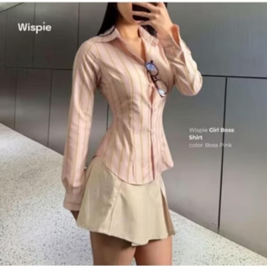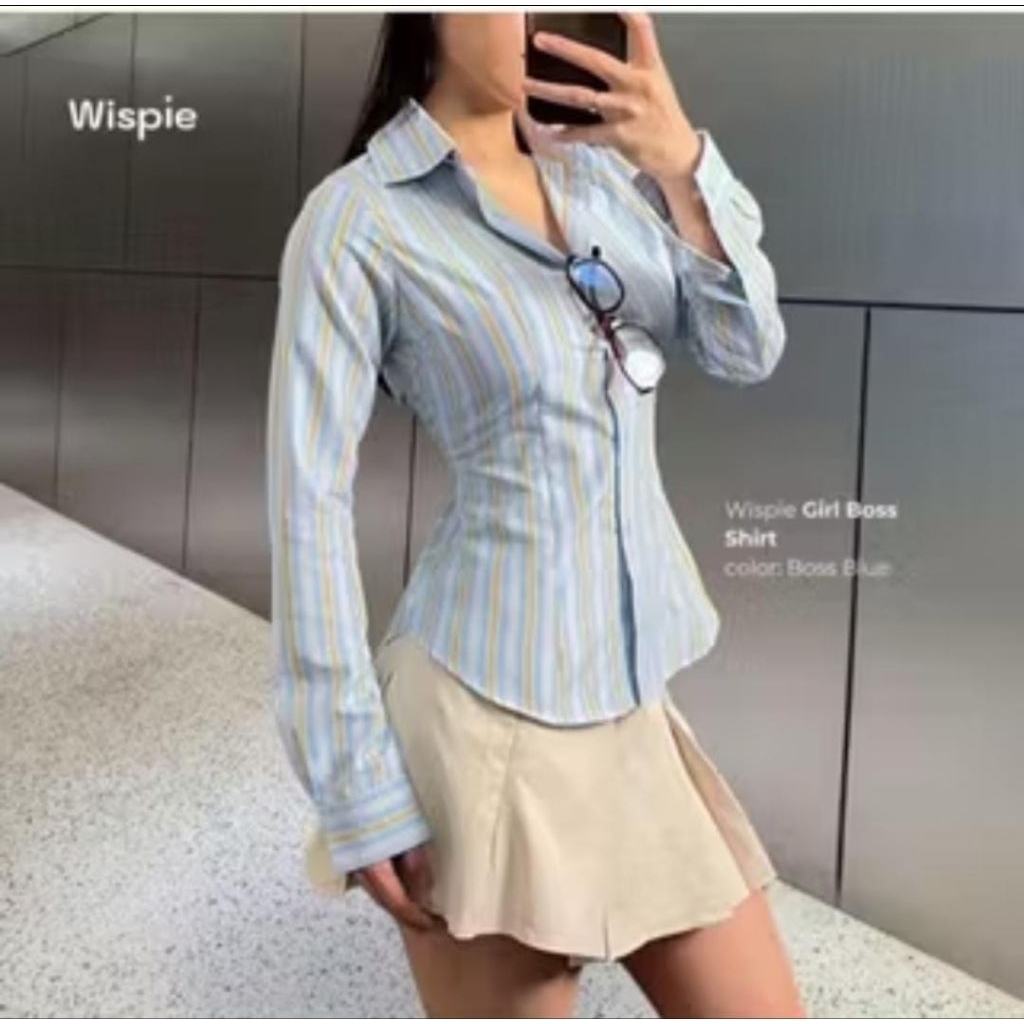 Kemeja Fitted Stripe Salur Basic Casual Lengan Panjang Galista Katun