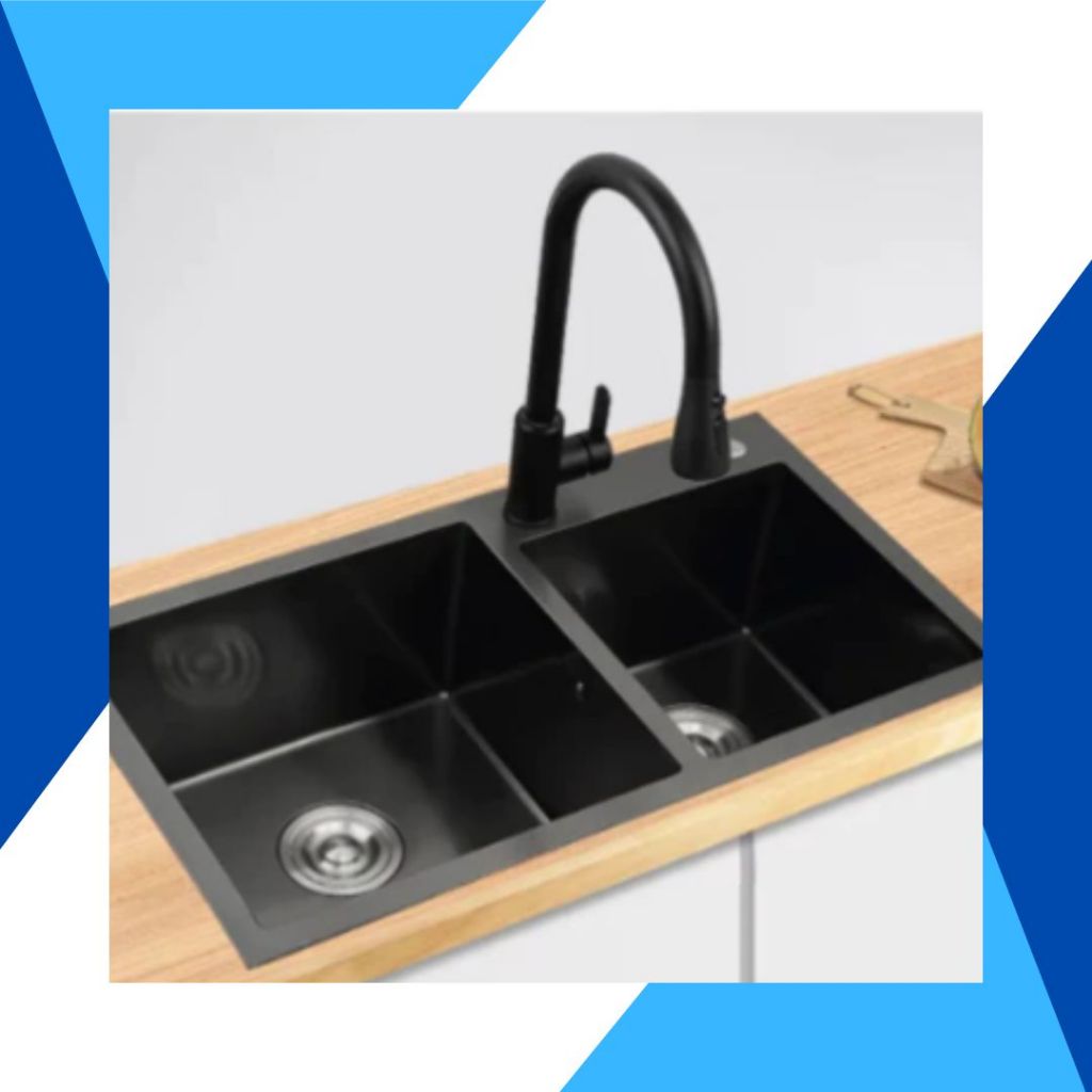 KITCHEN SINK BLACK BEDA SISI HITAM 82 x 45 / WASTAFEL 8245 LUBANG 2 HITAM STAINLESS SUS 304