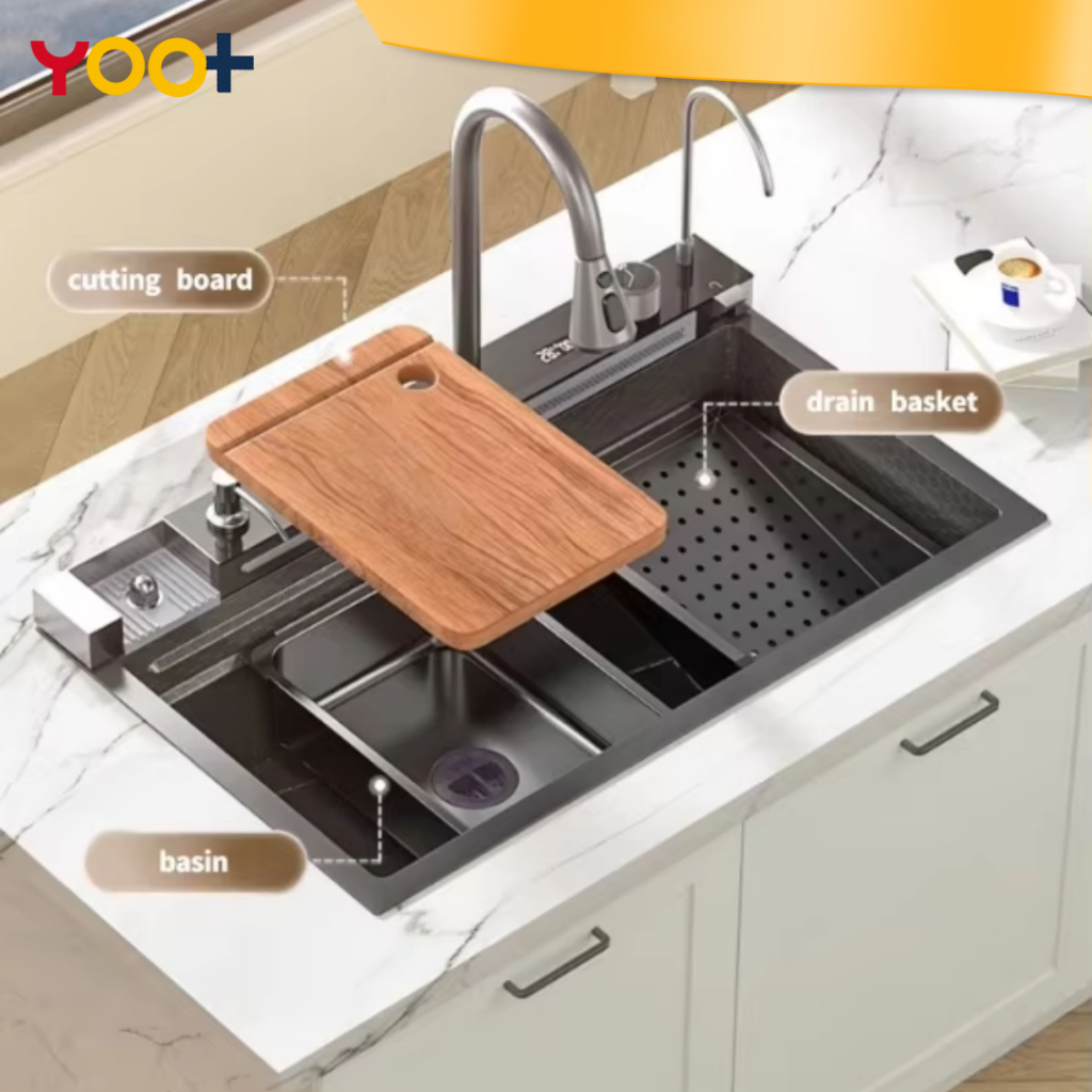 HT Hardware - Kitchen Sink Modern Super Black SUS 304 Stainless Steel 3.0MM Bak Cuci Piring Wastafel Dapur Lengkap Adjus