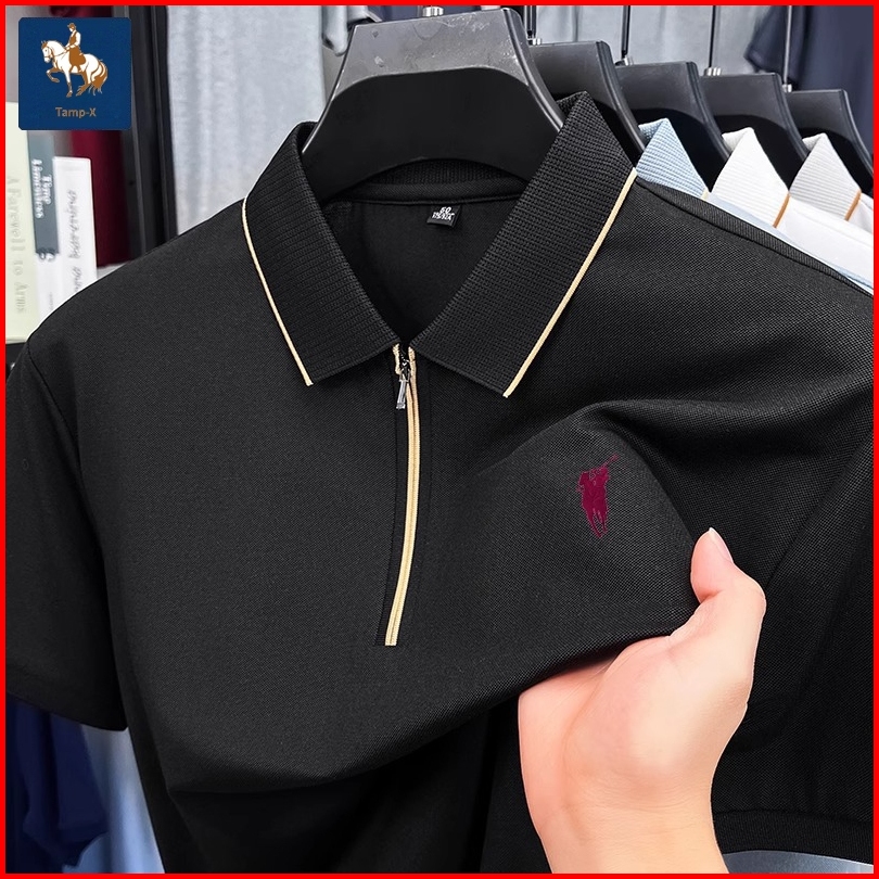 Tamp-x Polo Shirt Pria Distro Kerah Casual Resleting Setengah Lengan Pendek Premium Original Korean Style Slim Fit Putih